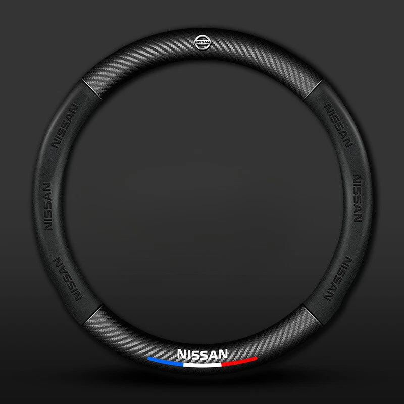 For Nissan Carbon Steering Wheel Cover Leather Car Accessories 15"BLACK
