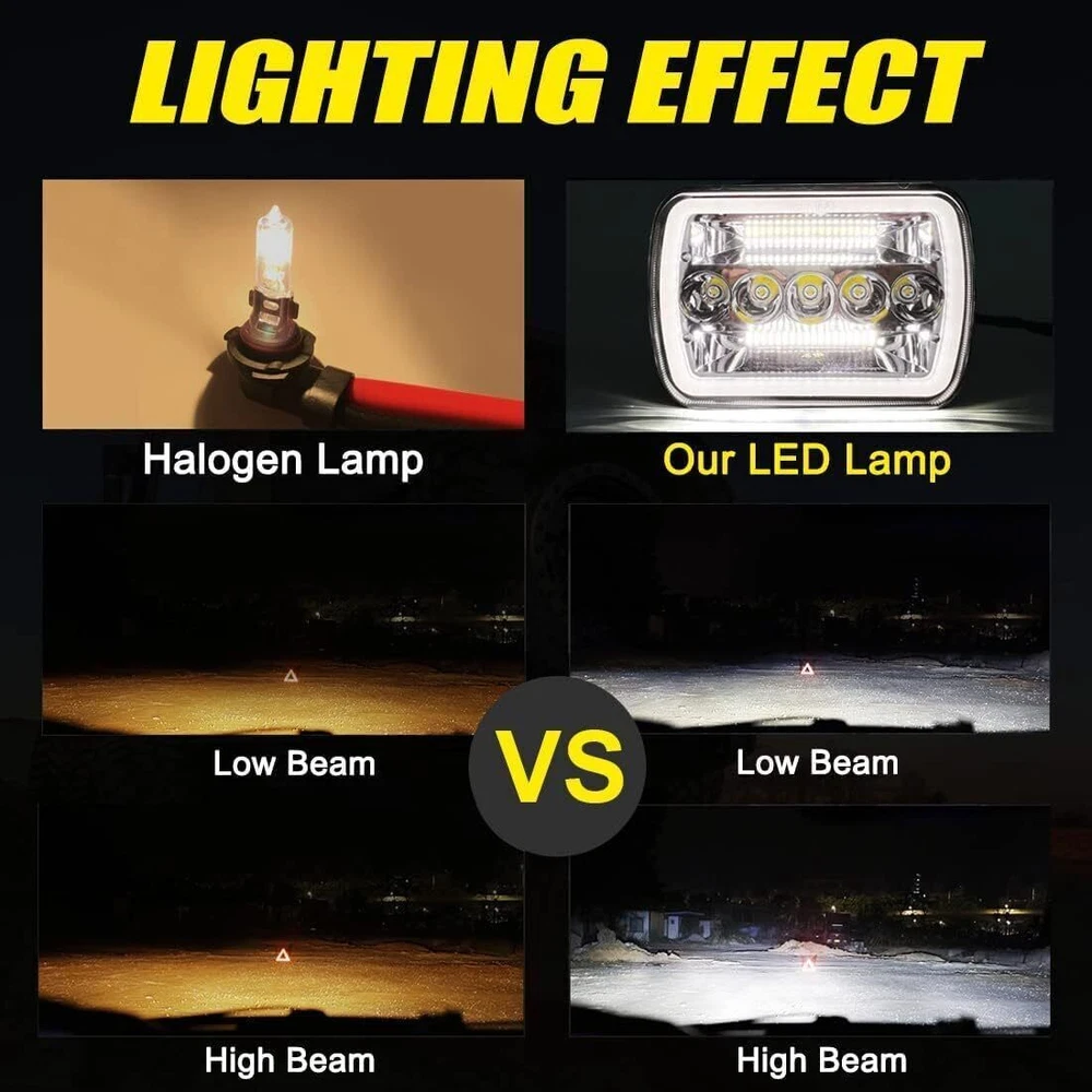 For Nissan Pickup Hardbody D21 2Sets 7x6" LED Headlights DRL High/Low Beam NEW Features: 1. Hottest 7x6 5x7 inch led headlight. With Newest 120W Powerful LED chips, much brighter and durable than stock headlight or other headlights. 2. Three Light Mode: High Beam, Low Beam, DRL, 3. Super bright. 8250LM@high beam, 4250LM@low beam, 6000K-6500K Pure white light. Helps to reduce traffic accidents cause by bad weather or adverse road condition. Ensure driver\\'s safety. 4. Diecasting aluminum alloy shell is not easy to deform and will improve cooling performance. Surface electrostatic prevention, with EMC: Anti-electromagnetic interference. 5. Shock-proof and Waterproof IP67, Upgraded cooling system,More than 80,000 hours lifespan, Totally Risk-free under LIFETIME WARRANTY. 6. Easy to Install: Standard H4 socket, Just Plug and Play, connect the extend DRL wire with your car\\'s ACC. The anti-flicker is integrated with circuit board. Perfectly avoid flickering. 7. Certifications: CE, RoHS, ISO9002, DOT, SAE, IP67 Approved. 8. The cutoff is very shrill and straight, No Blind Area and dim spots. It won\\'t blind other drivers like other headlights. Specification: Type: Square Type Sealed Beam Lamp Size: 7x6\\'\\', 5x7\\'\\' Lighting Technology: LED Housing Color: Black Voltage: 10V-30V Light output: 8250LM high beam, 4500LM low beam LED Light Mode: High Beam/Low Beam/DRL/Turn Signal Light Power: High Beam(60W)/Low Beam(40W)/DRL(10W)/Turn Light(10W) Life span: Up to 70,000 hours Waterproof Rating: IP67 Material: Die-cast aluminum Lens Material: Clear PMMA Lens Itment Type: Direct Replacement Compatible with headlights: H6014 / H6052 / H6054 / 6054 Package Contents: 2x 7x6" 5x7" inch LED Headlights (Not including H4-H13 Adapter) Note: 1. Please confirm if the headlight fits your vehicle before purchasing. 2. Professional installation is strongly recommended in case of any difficulty in installation. 3. Please check whether the headlight is firmly installed before driving to ensure driving safety. 4. The picture may be a little different from that of real item due to the different display and different light. 5. If you have any questions about the product, please contact us. If you suffer from problems, such as dim headlights, malfunctioning headlights, or PINs on your vehicle are not standard, please purchase H4 9003 wiring harness. Our listing NOT INCLUDE. Fitment: Any other car H6054 H6014 H6054LL 69822 6052 6053 with 5"x7" OR 7"x6" Rectangular Headlight Fit For any Vehicle with 5x7 inches (also known as 7x6) Headlights,such as: For Chevy Models with 5"x7"(7"x6" ) Headlights. for Chevy Astro, Tahoe, Tahoe S10 for Chevy S10, S10 Blazer, S10 Pickup, K5 Blazer for Chevy K1500, K2500 Suburban for Chevy Express 1500, 2500, 3500 for Chevy C10 C20, C1500 C2500 C3500 Suburban for Chevy C1500 C2500 C3500 Suburban for Chevy C6500 C7500 Kodiak, C8500 Truck for Chevy Corvette C4, Colorado, El Camino for Chevy Express Cargo Van 1500 2500 3500 4500 for Chevy G10 G20 G30 for Chevy K10 K20 K1500 K2500 Suburban, K30 For Dodge Models with 5"x7"(7"x6" ) Headlights. for Dodge Ram 50, Ramcharger, Rampage for Dodge B150 B250 B350 for Dodge D150 D250 D350 D50 for Dodge W100 W150 W250 W350 for Dodge Aries, Aspen, Caravan, Challenger, Charger, Colt, Conquest, Coronet For Ford Models with 5"x7"(7"x6" ) Headlight for Ford F-150 Pickup, F-250, F-250, F-350, F-450, F-550 Super Duty for Ford Aerostar Van, Bronco, Ranger II, Mustang for Ford E-150, E-150 Econoline, E-150 Econoline Club Wagon, E-250 for Ford E-350 Super Duty, E-350 Econoline Club Wagon, E-350 Econoline, E-350 Club Wagon for Ford E-450 Super Duty for Ford F-250, F-350, F-450, F-550 Super Duty for Ford F-600, F-650, F-700, F-750 Truck For Jeep Models with 5"x7"(7"x6" ) Headlights. for Jeep Wrangler YJ 1987-1995 for Jeep Cherokee XJ 1984-2001 for Jeep Comanche MJ 1986-1992 Compatible with Headlights: H6014 / H6052 / H6054 / 6054 Some vehicles such as For Toyota may need to move the pins on the headlamp plug to different position.(or a adapter) For GMC Models with 5"x7"(7"x6" ) Headlights for GMC Savana 3500 ( 1998-2002, 2004, 2007, 2009-2012) for GMC Savana 2500 ( 1998-2001, 2004, 2006, 2008, 2010-2012 ) for GMC Savana 1500 ( 1998-2001, 2003, 2005, 2007, 2009-2012 ) for GMC Safari ( 1998-2002, 2004, 2005 ) for GMC K3500 ( 1997-2000 ) for GMC K2500 Suburban ( 1997-1999 ) for GMC K2500 ( 1997-2000 ) for GMC K1500 Suburban ( 1997-1999 ) for GMC K1500 ( 1997-1999 ) for GMC C2500 Suburban ( 1997-1999 ) for GMC C2500 ( 1997-2000 ) for GMC C1500 Suburban ( 1997-1999 ) for GMC C1500 ( 1997-1999 ) For Mazda Models with 5"x7"(7"x6" ) Headlights for Mazda B2000 B2200 B2600 RX-7 GLC For Nissan Models with 5"x7"(7"x6" ) Headlights for Nissan 200SX, 240SX, 300ZX, NX for Nissan Hardbody D21 DPickup for Nissan Maxima, Pulsar, Pulsar NX, Sentra, Stanza For Toyota Models with 5"x7"(7"x6" ) Headlights for Toyota 4Runner Pickup for Toyota Celica, Corolla, MR2, Starlet, Supra, Tacoma, Tercel For other Vehicle with 5x7 inches (also known as 7x6) Headlights, such as: for Buick, Cadillac, Freightliner, Honda, International Harvester, Isuzu, Jaguar for Kenworth, Mercedes-Benz, Mercury, Mitsubishi, Oldsmobile for Peterbilt, Peugeot, Plymouth, Pontiac, Subaru, Volkswagen