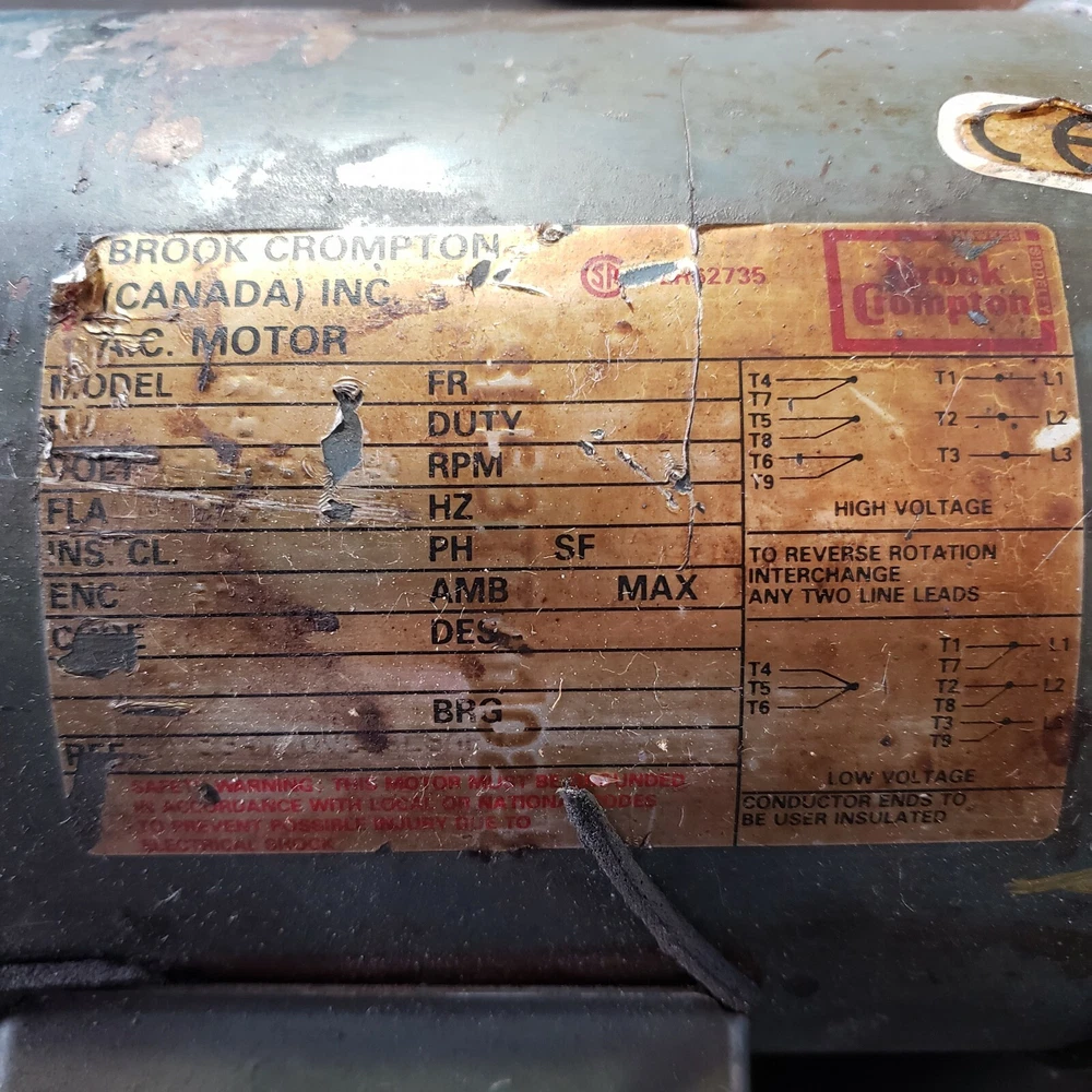 Brook Crompton AC Motor 205-230/460v. Condition is "For parts or not working". In bad shape, will likely need bearings soon. Label is hard to make out.