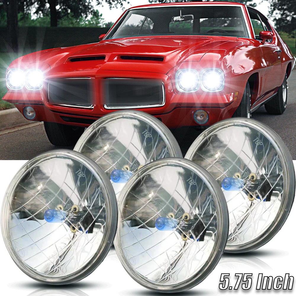 THESE ARE HALOGEN SEMI-SEALED BEAM STOCK STYLE GLASS FACED HEADLIGHTS WITH METAL BACKSIDES! REPLACEABLE SUPER WHITE 100/130 W HALOGEN H4 BULBS INCLUDED! Stock Style H4 Replacement Upgrade Headlights Pair - High Beam Headlight Pair 100/130W Dual Beam Super White Halogen Bulbs Glass Lens / Metal Backside DOT SAE Approved This listing is for 4 pcs new 5-3/4" stock style glass faced halogen H4 conversion headlight bulbs. These halogen semi-sealed beam headlights look almost the same as the original headlights your vehicle came with when it was new, except these light up 200% brighter then the stock style incandescent bulbs and take a replaceable 100/130W super white H4 bulbs. These have the original shaped prongs on the back so they will plug right into your original wiring harness plugs. These have the correct locating tabs on the backside to clock properly into the high beam headlight buckets. These are correct for any car or truck that has 4 round glass headlights. Each bulb is 5 3/4 inches in diameter. DOT SAE approved. Notes: 1. 100% Brand New in the box with manufacturer packaging, never been installed before. 2. Factory bolt-on OE fitment, no vehicle modifications are required; or replacement for the stock unit. 3. No installation guide or instruction included, professional installation recommended. 4. We Provide 60 day manufacturer warranty after you received this Item. Product Features: 1. Great upgrade for your vehicles exterior looks. 2. Direct replacement of the original lights, no modification needed,A great upgrade for your vehicle. 3. Precision optics offers a highly controlled concentration of light to enhance visibility. 4. Enhance visibility during night time, heavy rain, snow, or dense fog. 5. High quality OE grade materials to withstand the most rigorous weather conditions. 6. The Halogen bulbs are included. H4 bulb is compatible with the headlight. Package Includes: 4x Headlight (Pair Passenger and Driver Side) with Halogen Bulbs On Dec 16, 2024 at 17:48:36 PST, seller added the following information: