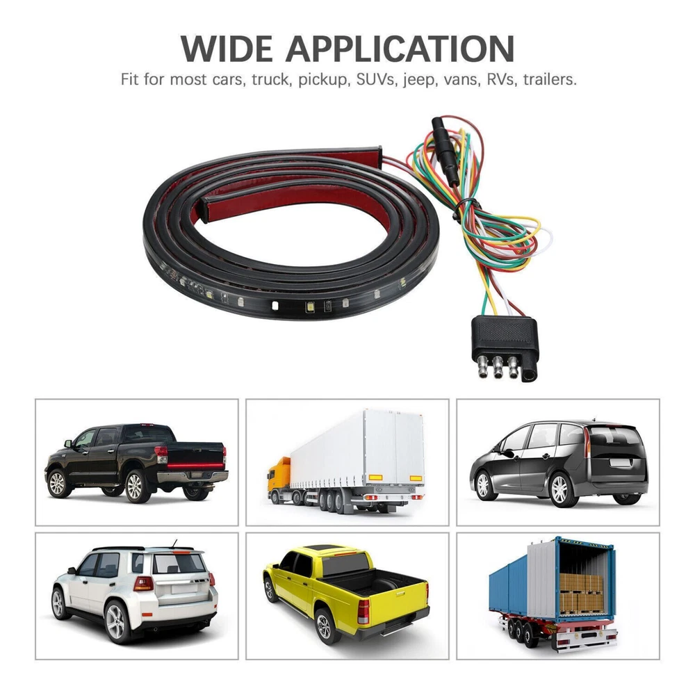 SAFE & SECURE SHOPPING 100% SATISFACTION GUARANTEED FAST SHIPPING Store Categories Store Categories You may also like For RV Trucks SUV Jeeps 60" LED Strip Tailgate Light Bar With Tape Waterproof 1X Product Description Features: 1.Universal Fit for most trucks, SUV, For Jeeps, and RV. 2.Good quality, good operation. 3.Fully sealed waterproof design. 4.Low power consumption and ultra-long life. 5.Plug and play standard 4PIN connector. No need to change any lines. Specifications: 100% Brand new and waterproof Voltage: DC-12V Wattage: 22W LED Type: 2835 LED Led number: 90pcs Color: Red for turn signal, parking and brake, white for reverse lights. Lampholder Interface: Standard 4 PIN connector Lamp working mode: 1. Running lights: red light is all bright and low 2. Reversing light: white light is highlighted 3. Brake light: red light full bright strong light 4. Left steering: The red light on the left side is half bright 5. Right steering: The red light on the right side is half bright Package Includes: 1x 60" long Tailgate LED strip with tape Shipping Returns Contact Us Payment Shipping We ship most of our orders within 24 hours, and may up to 48 hours. If you want faster shipping way, please contact us before making a payment. Sometimes due to problems with our transportation company system, your shipping information may be delayed to update. We recommend that you try again after 3-4 days. If you still haven't checked the shipping information, you can contact us via ebay message. Returns 1. 30 days warranty from the purchased date. Please contact us via email before returning the defective item. 2.Our warranty does not extended to any product that are physically damaged or that are not under normal operating conditions as result of misuse or improper installation on the buyer/user's part. 3.Return items should include the original packaging and all accessories. buyers MUST contact us for the returning address. 4.In all cases, buyers pay shipping fees at their own cost to return products for exchange or refund. We will be responsible for the postage of replacements. Refund will be made upon receipt of the returned item. Contact Us Pls contact us if you have any problems,we will try our best to solve for you Payment We accept all verified payment from eBay. Copyright © 2022 Tongtool