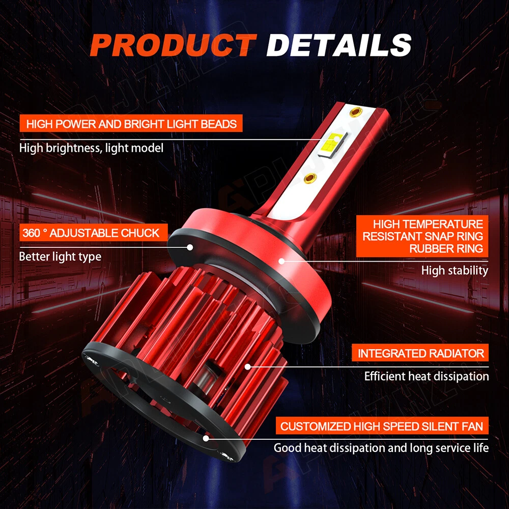 Note: 1.This kit is for vehicles with Factory Halogen Systems, it will not work with vehicles with Factory HID.Pls confirm the item if it can matches your car before you purchase. Product description: light Source Model:CSP Chip,super bright Power: 55W/Bulb Lumen:5500LM / Bulb Operating voltage:DC9-32V Beam Type:High beam & Low beam Material: Aluminum PCB and PA66+30% GF Plastic Beam Angle:360° Color Temperature: 6000K Cool White Lifespan:over 30000h Working Temperature: -40-+80 Centigrade Waterproof rate: IP 68 Connector Type:Plug and Play Application :LED Headlights Headlamp Lamp Bulbs High or Low Beam Color Temperature: Pure White 6000K IP68 rated water and dust seal,over 30000hrs lifetime Usage: headlight+foglight (2pcs/set) CSP Hi-Lo Beam LED headlight conversion kit Latest CSP chip light source,/360 degree no blind zone Engineering beam pattern design throw more light on road evenly at appropriate angle without foggy light Xenon white light reflect road paint/signs better to show clearer road situation during night driving 270 degree low beam angle with cut-off line,will not dazzle oncoming traffic All-in-one heat conduction+high speed mute fan system keep the light bulb in appropriate working temperature Built-in constant current CPU, instant full brightness without start-up relay Two-way heat dissipation channel 1.All-in-one aluminum profile as heat conduction system, 360 degree heat radiating 2.High speed mute fan (12000R/Min),high Air flow for faster cooling rate Package Included: 6PC LED Light 9005 (High Beam) + H11 (Low Beam) + 9145 (fog light) Information: a)Compatible List can not show up all Car model. Please check the Correct item size of your vechicle. it will work and fit.Thank you! b)If you are unsure the item fit or not , please do remember send message to tell us your car make, model, year and other information which is helpful to check the item fit or not.For example: For 2004 Ford F 150, high/low beam For 2015 RAM 1500 with projector-type, high beam For 2019 Ford F 150 ,XL Crew Cab Pickup 4-Door 2.7L On Nov 20, 2024 at 03:17:25 PST, seller added the following information: