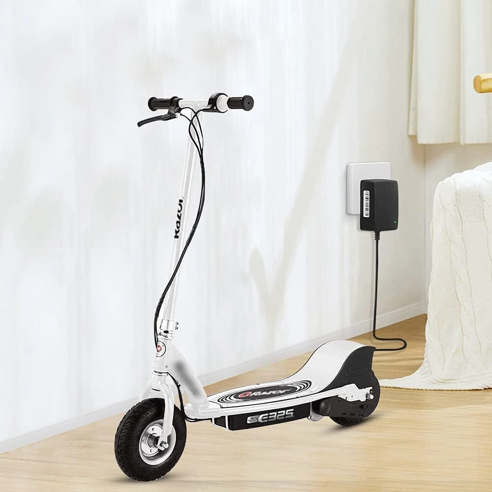 Compatibility: Fits for razor e100, e125, e150, e175, e200, e200s, e225, e235, e275, e300, e300s, e325, e500, e500s, pr200, four wheeler, pocket mod, crazy cart, dirt quad, dune buggy, zr350, drift mx350, mx350 dirt rocket, mx400 dirt rocket and more electric motorcycles Input: AC 100-240V 50/60Hz, output 24V 1.5A (1500mA), 6.6ft, perfect substitute the original charger, it charge 8% faster than original charger Safety: Fully certified with UL and ROHS standards. Power use for rapid charging and Over Charge Protection, Over-current Protection, Short-circuit Protection Intelligent Charging: State two color LED indicates stage of charge. Red light Charging/ Green Light Fully Charged Note: Not for hoverboard, go kart, power a5, a6, a3, e90, power core e90, pocket mod petite, miniature, mx125, mx500, mx650, Not an original charger Customer Service: If you encounter any issues, don't hesitate to reach out to us via email. We're here to offer quick support and solutions, ensuring a smooth and worry-free experience Product Description 24 Volt Replacement Charger for Razor Scooter ・Certified Safety: Fully certified with UL and ROHS standards. ・Reusable and fast charger ・Can be used to charge 24V razor scooter ・State two color LED indicates stage of charge. Red light Charging/ Green Light Fully Charged ・With a charging protection mechanism. Will not overcharge your battery 1 Charging Safety 2 Flameproof Material 3 Robust Interface How to choose the right charger for razor scooter? Add to Cart Add to Cart Add to Cart Add to Cart Add to Cart Add to Cart Customer Reviews 4.5 out of 5 stars 548 4.2 out of 5 stars 565 4.2 out of 5 stars 565 4.3 out of 5 stars 324 4.6 out of 5 stars 201 4.2 out of 5 stars 595 Price $13.99 $ 13 . 99 $9.99 $ 9 . 99 $9.99 $ 9 . 99 $13.99 $ 13 . 99 $24.89 $ 24 . 89 $17.99 $ 17 . 99 Output Voltage 24V 12V 12V 12V 36V 36V Compatibility e100, e200, e300, mx350 etc. Power Core E90 E95 etc. MX125 Dirt Rocket etc. E90, PowerRider 360, Jr. MX500,MX650 etc. — Smart light ✔ ✔ ✔ ✔ ✔ ✔ Replace P/N W13112099014 W13111416023 W13111416023 W13111401014 W15128190014 W15155059014 Power line length 6.6FT 6.5FT 6.5FT / / / E Scooter Series for Razor e100, e125, e150, e175, e200, e200s, e225, e235, e275, e300, e300s, e325, e325s, e500, e500s. Dirt Scooter Series for Razor Dirt Rocket (MX400,MX350, SX350 Dirt Rocket McGrath Electric Motocross), Dirt Bike (MX400, MX350, SX350) Pocket Mod Series for Razor Pocket Mod (Bella, Betty, Bistro, Daisy, Hannah Montana, Kiki, Sweet Pea, & Vapor) Other Scooter Series for Razor Moped, Quad, 4 Wheeler, Go Kart, Power Core E100, XT300, XT350, ZT350, MC350, ZR350 Electric Motorcycle, Crazy Cart, eSpark, Trikke E2, Ground Force Go Kart, Mini Chopper, Rebellion Chopper etc. Other Scooter Series Boreem Jia 601-S-250 watt version, 602-D - 250 watt version, City Express,Dynacraft Hello Kitty City Cruiser, Electra Scoot-N-Go, Freedom 644, 942, 943, 946, 947, 961, Hot Wheels Urban Shredder, Motovox MBxXSe, Rad2Go Leopard Shark E5, Tiger Shark E10, Ranger Safari, Star II, SunL Big Bug, Super Ride, Turbo 350 EG, Urban Express, Vapor X-12, X-24, X-Treme X-250, X-50-300, Zip'r3 Traveler, Zip'r3 Xtra Hybrid Traveler, Zip'r4 Traveler, Zip'r4 Xtra Hybrid Traveler etc. Does it charge faster than original charger? Yes, it's a good replacement and works like the original charger. Is charging indicator light bright enough? Red light on when charging; Green light on when fully charged or Not in charge Is charger compatible with razor mx350? YES. Does it meet safety standards for charging? FC Listed; Overcharge Protection, Short Circuit Protection, Overheating Protection Is its power cord length sufficient? Yes, the cable is about 6.6FT.