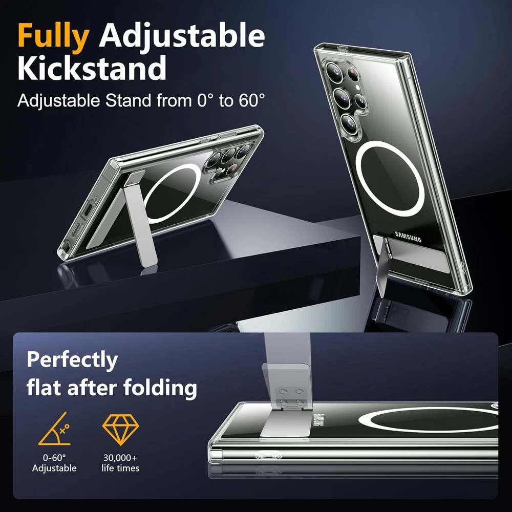 For Samsung Galaxy S23 Ultra Case w/ Military Grade Protection & Invisible Stand 【Case for S23 Ultra】 designed for Samsung Galaxy S23 Ultra 5G 6.8-inch 2023 Release, does Not fit for other models, please check your phone model before buying. Precise hole cutting and sensitive buttons ensures easier access to every button and function. 【Functional & Invisible Stand】The stand of the Samsung Galaxy S23 Ultra case is foldable, sturdy and built to last, with built-in handy stand made by light and solid Aerospace-grade aluminum offering a sturdy and flexible portrait, landscape or conference call mode experience. It allows you to get a more comfortable viewing angle. Reduce the frequency of looking down at the phone screen to avoid hurting your back and neck. 【Super Strong Magnetic】With a built-in magnetic ring that aligns perfectly with magnetic chargers, this case offers a stronger attachment and faster charging speed. Compatible with all magnetic accessories and wireless chargers (such as car wireless charger, wireless power banks, magnetic wallets, etc). 【12FT Military-grade Shockproof】Passed Military Drop Tested up to 12FT, it has a tough PC brushed back and soft flexible rubber bumpers that provide strong cushioning for everyday drops. Built-in 360°all-around powerful impact-dispersing airbag and 4-corner impact-resistant corner technology. The tiny design of 1.5 mm lips over the camera and 1.5 mm bezels over the screen prevent the screen and camera from dust and scratches. 【Slim Design & Comfortable Grip】 This slim Samsung Galaxy S23 Ultra case brings you greater portability and firmer grip, easy to stay clean, anti-fingerprint and brings the exceptional silky touch feeling, with no bulk and no skidding to fit in pocket easily. What's in the Box: 1x Case with Invisible Stand (Phone Not Included) Top-Notch USA Seller | S wift USPS/UPS delivery | Shipped within 1 Business Day | Quick Replies | Free Shipping | Prompt Communication Contact us We value open communication with our customers. Our team is committed to providing quick responses to any queries or concerns you may have regarding our products or your order. Please feel free to contact us on eBay's Internal Message System for any questions or concerns you may have. Our dedicated customer service team is committed to providing exceptional support and ensuring your shopping experience with us is nothing short of excellent. Customer Service We strive to offer the best quality products to our customers. Each item listed in our store undergoes rigorous quality checks to ensure customer satisfaction. If you have any problems, we are very glad to help you. Please message us directly through eBay for faster response. Your inquiry is important to us and we'll respond within 24 Hr.