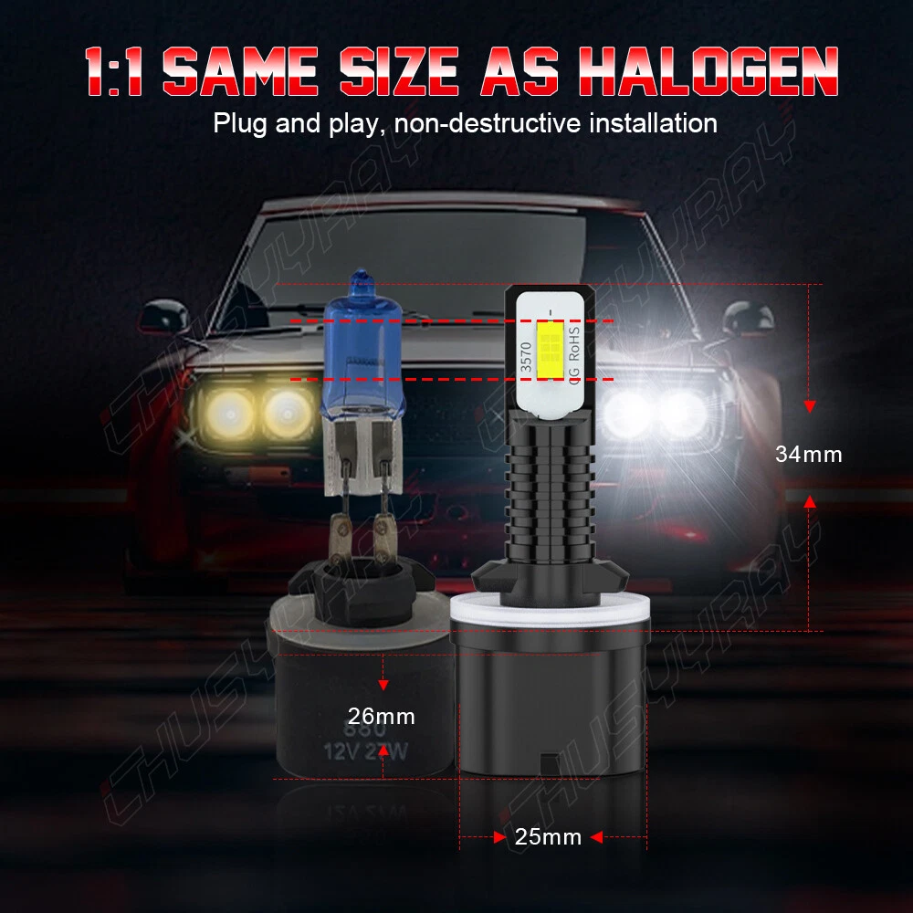 Headlight: Plug Type: 9005/HB3 + 9006/HB4,High Beam + Low Beam chips type: 2-sided CSP chips Wattage: 100W Hight luminous efficacy Flux:10000LM/Pair Color Temperature: White 6000K Waterproof: Aviation 6063 aluminum profile Operating Temperature: -40-+150 degree Celsius Voltage:9V to 32V NEW Mini Hi-Low Beam headlight conversion kit Description: 💎 High brightness: The latest CSP with 6000K cold white chip; 500% brighter than the existing halogen headlights. 💎Simple Installation: Installation only takes 10 minutes. There is no relay. There is no capacitor. No additional wiring. Plug and play. 💎IP67 waterproof: using integrated radiator and aluminium body self-cooling, waterproof and heat-proof. Even in extreme cases, the enclosure of the rainproof driver can work properly. Automatic short circuit protection. Fog Light: Voltage: DC12V Wattage: 80W/bulb LED Quantiy: 2-sided CSP chips Brightness: 8000Lumens Life span: 50,000hrs Mail color: Black Shell. Socket: 880,893,881,881L,881X,889,862,894,894X,896,898,886,888, etc. Application: Fog light, DRL( daytimerunning light) Installation: plug and play Package Included: 4pcs 9005+9006 Headlight Bulbs 2Pcs 880 Fog Bulbs Boxes are shipped randomly Install Caution 1. As a safety precaution, make sure that the car has had time to cool down properly before starting the installation process. 2. Put the vehicle into park or make sure it is securely in gear. 3. Make sure to have the ignition turned off and the keys removed. 4. Be careful to avoid burns, especially when turning on or off the vehicles lighting. 5. Be careful to avoid crushing or cutting the bulbs. Also make sure to not touch the bulbs with your fingers, as this will cause blotting. 6. Fully examine the connection of the contact points, ports and the wires as faulty connections can cause lighting problems. 7. Make certain that the end of the bulb does not come in contact with the interior light shield of the headlight when adjusting the bulb. 8.Please install car headlight dust cover to ensure the normal operation of the lamp (to prevent dust and small ribbons to reduce the chances of bulb cooling fan broken to ensure the normal operation of the cooling system). Information: a)Compatible List can not show up all Car model. Please check the Correct item size of your vechicle. it will work and fit.Thank you! b)If you are unsure the item fit or not , please do remember send message to tell us your car make, model, year and other information which is helpful to check the item fit or not. For example: For 2004 Ford F150, high/low beam For 2015 RAM 1500 with projector-type, high beam For 2019 Ford F150 ,XL Crew Cab Pickup 4-Door 2.7L