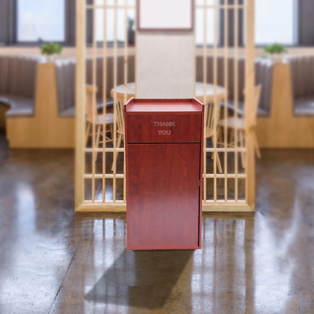 For Self-service Restaurant Trash Bin Cabinet W/ Tray Rack 40Gallon Freestanding Description Our trash can is a high-quality garbage collection container designed specifically for public places, crafted from carefully selected ecological boards, showcasing a natural texture and elegant appearance. It has a stable structure, large capacity, and can withstand high-frequency use. It is easy to clean, ensuring environmental hygiene and user convenience. Let it improve the cleanliness and aesthetics of the dining area now! Key Features Selected Material: The environmentally friendly ecological boards with a certain extent of moisture-proof performance are not easy to deform and wear, ensuring long-term use and conforming to the concept of modern green life. Spacious Capacity: Its built-in trash bag provides ample storage space (27.24 quarts), suitable for a variety of places such as offices, restaurants, cafeterias, and food courts, reducing the frequency of cleanup. Effective Load-bearing: Thanks to its thick boards and stable rectangular structure, it can effectively bear 110.23 lbs of weight, which can meet various commercial uses. Thoughtful Design: The large swing-open door design allows you to throw your trash more smoothly, and the top platform makes it easy to place items such as food trays(not included) on it. Contemporary Decorating: The simple silver appearance can be easily integrated into various business environments, adding a sense of elegance to the space. Pleasing Environment: With this trash can, the food court, office, or other public environments will be clean from dirty garbage and clutter, so you can enjoy a comfortable and civilized atmosphere. Easy to Clean: The smooth surface, removable trash bag, and simple structure make it easy to clean this product with a damp wipe. Its front door allows for convenient trash removal. Simple Installation: The simple structure, complete accessories, and reserved holes on the boards allow you to install it easily and start to use it in a short time. Customer Service: We aim to provide quality products and services. If you have any problems, please feel free to contact us. We will reply and solve the problem for you as soon as possible. Trash Bag: It comes with a foldable canvas trash bag inside, convenient for your daily use and cleaning. Heightened Baffle: The top edges are heightened(1.97 inches) to prevent items from accidentally falling off the top platform. Smooth Edges: The smooth edges without burrs enhance the beauty of the product and better care for your skin when cleaning it. Application It is ideal for restaurants, cafeterias, food courts, schools, hospitals, hotels, coffee shops, offices, libraries, break rooms, and so on. Specification Color: Silver/Brown/Black/Oak Style: Modern Shape: Rectangular Material: Ecological Board, Hardware Mount Type: Freestanding Assembly Required: Yes Overall Load-capacity: 50kg/110.23 lbs Trash Bag Capacity: 30L/27.24Qt Top Baffle Height: 5cm/1.97in Product Size: 55.88*55.88*116.84cm/22*22*46in Package Size: 120*62*12cm/47.24*24.41*4.72in Gross Weight: 18kg/39.68 lbs Package Included 1* Trash Can 1* Trash Bag Other Accessories for Assembly Notes Please check the product size before purchasing. Please do not place this product in a humid environment or expose it to strong sunlight for a long time. Please allow the slight color difference caused by the shooting light and 1-3cm error due to manual measurement and make sure you do not mind before ordering. Payment Delivery details Terms of sales About us Contact us Payment We accept ebay payment 。 Fees such as import duties, taxes are not included in the item price or shipping costs. These charges are the buyer's responsibility. Delivery details Shipping: 2-9 working days to: USA Terms of sales We maintain high standards of excellence and strive for hundred percent customer satisfaction. Feedback is very important to us. We hope that you contact us immediately before you give neutral or negative feedback, so that we can address your concerns. It is impossible to address issues if we do not know about them! About us Your satis faction is our ultimate goal. We work hard to earn your trust and future business. Our certified technicians have tested each item before shipping. The unit comes with 1 year limited warranty on all manufacturing defects. a) If you receive a defective item, you may return it or ask for a discount. Please contact us within 14 days after you receive the package. b) What you returned must be intact and in its original packaging as re? u. Customer is responsible for shipping costs of the returned item. c) We will cover the cost of shipping back t with the shipping rate indicated in the registration page. We will send you a new unit or refund the full payment you paid. Thank you. Contact us Business Hour Business Hour: Monday To Friday: 8:30 AM to 5:00 PM (Beijing China time) Due to time zones, our reply to your questions may not be immediately. But within above working time, we will reply your email within 24 hours. If it's non-workdays, please kindly be patient and wait till Monday. Please contact us with ebay message. Please feel free to contact us if you have any questions. Monday To Friday: 8:30 AM to 5:00 PM (Beijing China time) Due to time zones, our reply to your questions may not be immediately. But within above working time, we will reply your email within 24 hours. If it's non-workdays, please kindly be patient and wait till Monday. Please contact us with ebay message. Please feel free to contact us if you have any questions. Material Ecological Board, Hardware Brand Unbranded Room Bathroom, Bedroom, Home Office/Study, Living Room, Kitchen, Utility/Laundry Room MPN Does not apply Shape Rectangular Mount Type Freestanding Assembly Required Yes Overall Load-capacity 50kg/110.23 lbs Trash Bag Capacity 30L/27.24Qt Top Baffle Height 5cm/1.97in Product Size 55.88*55.88*116.84cm/22*22*46in Package Size 120*62*12cm/47.24*