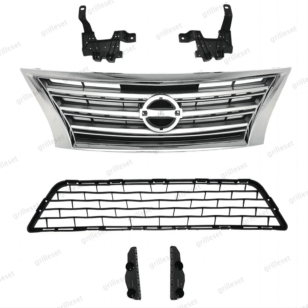 Fit for : 1 Set (6 PCS) Includes:(See more pictures for details) 2 Pc front grille retainer brackets 1 Pc front upper black grille with chrome trim 1 Pc front centre black grille mesh 2 Pcs front bumper brackets Item OE number : 62310-3SH0A;62225-3SH0A;62224-3SH0A;62254-3SH0A Installation : Perfect fit direct replacement, no modifications required. Installation manual not provided; we recommend professional installation. Item's-Features : Superior quality kit 100% brand new Made from high-quality materials Excellent replacement part, no modifications needed Other parts fit for