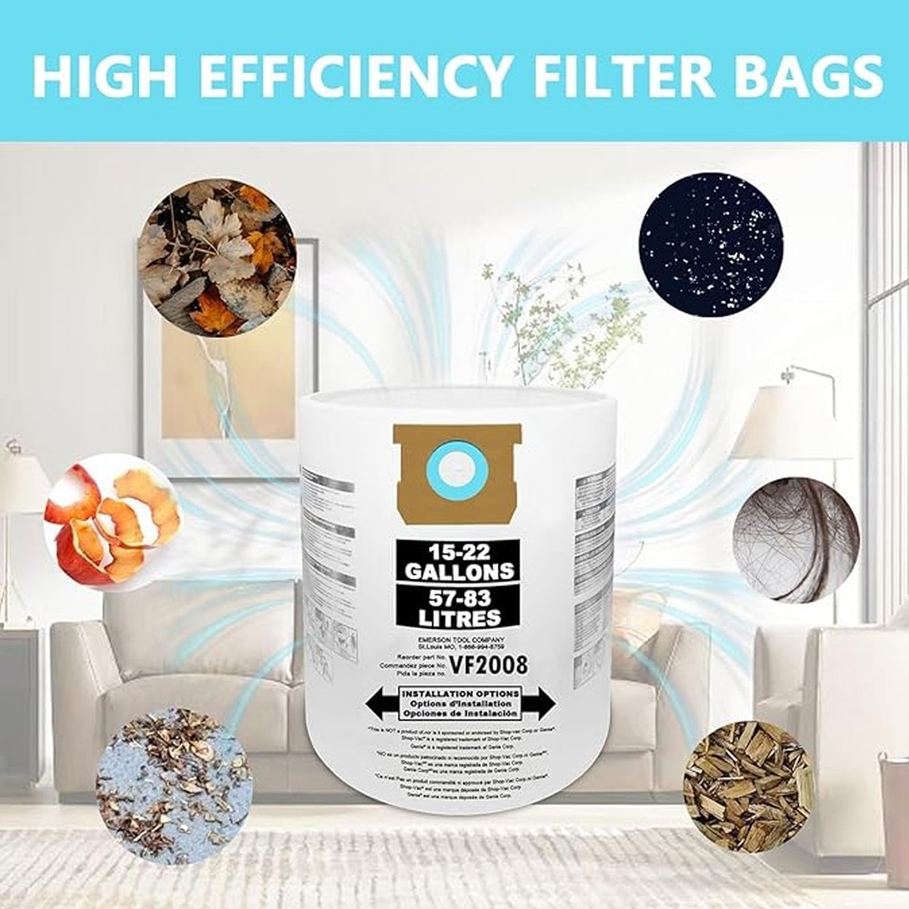 HomeFor Shop Vac Bags 15-22 Gallon Type G 90663 9066300 Type J 90673 9067300 VF2008