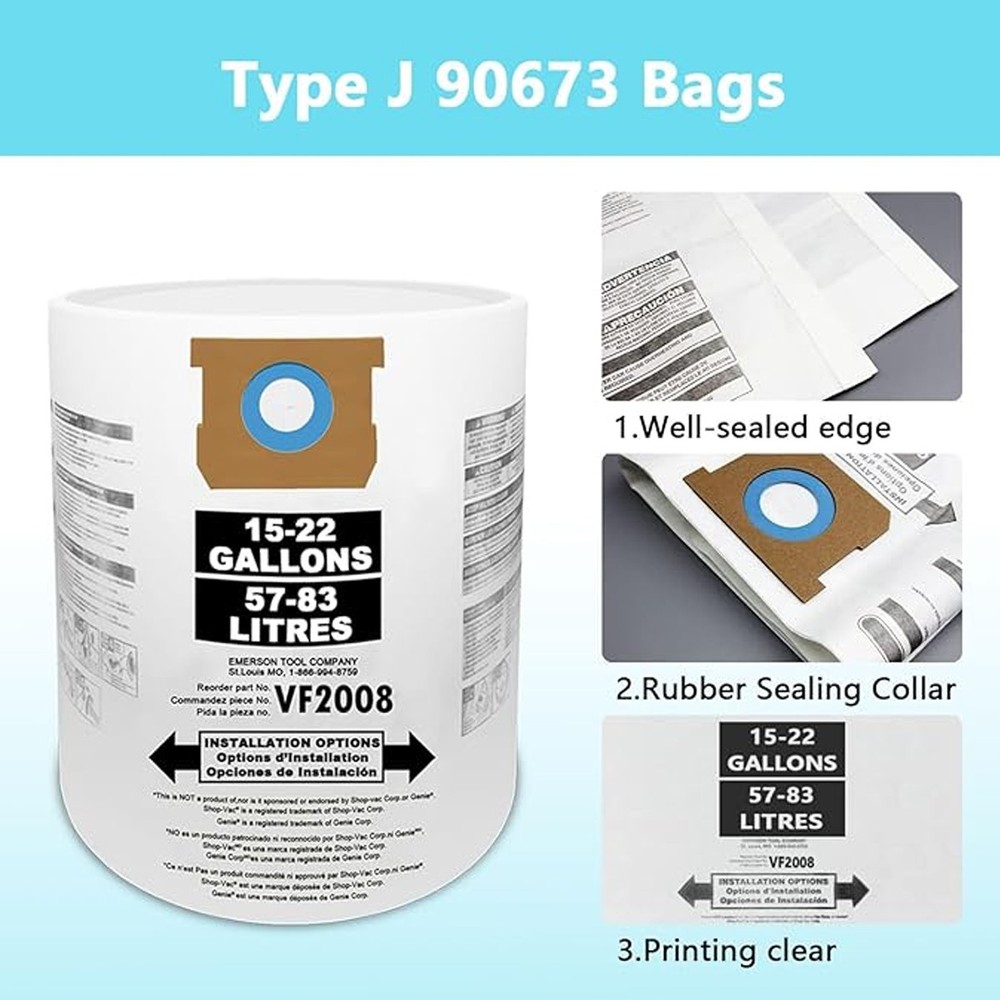 For Shop Vac Bags 15-22 Gallon Type G 90663 9066300 Type J 90673 9067300 VF2008
