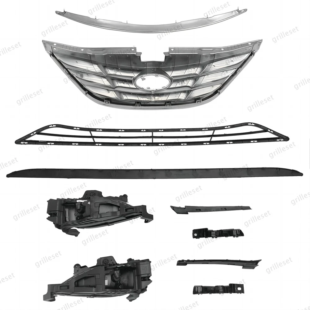 Fit for : 1 Set (10 PCS) Includes:(See more pictures for details) 1 Pc front upper black grille with chrome trim 1 Pc front upper radiator grille garnish assembly 1 Pc front lower black grille mesh 1 Pc front bumper lower lip assembly 2 Pcs fog lights with bulb 2 Pcs front bumper side brackets 2 Pcs front bumper brackets Item OE number : 86355-3S100;86350-3S100;86561-3S000;86591-3S000;92201-3Q000;92201-3Q000;86555-3S000;86556-3S000;86513-3S000;86514-3S000 Installation : Perfect fit direct replacement, no modifications required. Installation manual not provided; we recommend professional installation. Item's-Features : Superior quality kit 100% brand new Made from high-quality materials Excellent replacement part, no modifications needed Other parts fit for