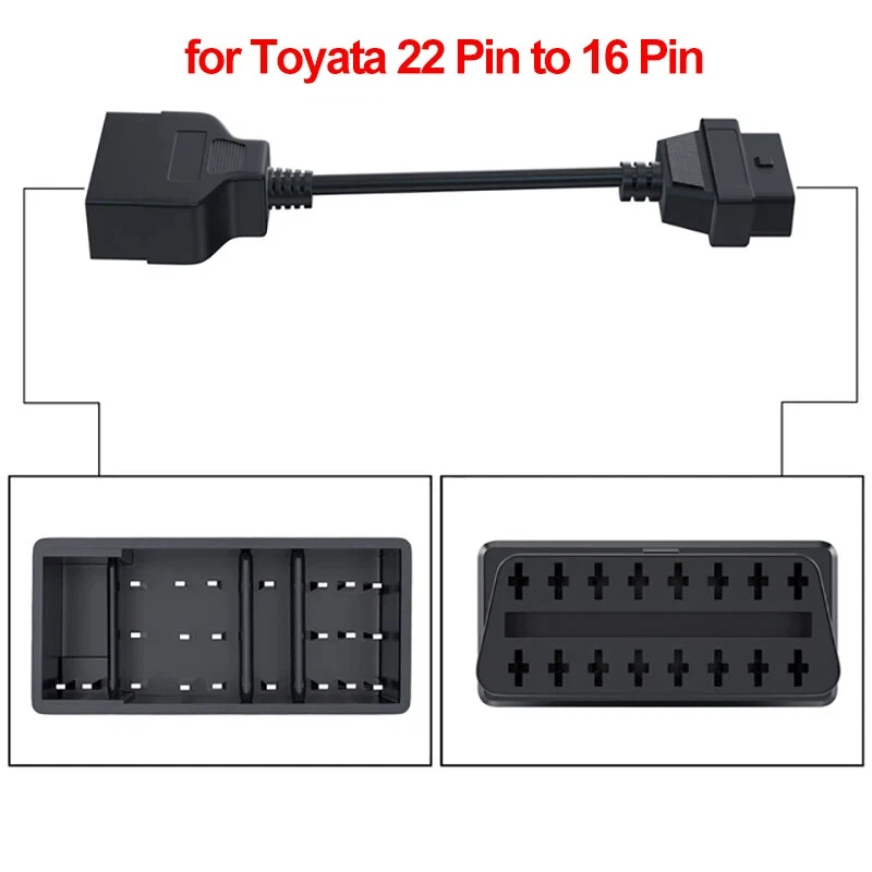 22 Pin OBD1 to 16Pin OBD2 Convertor Adapter Cable For TOYOTA Diagnostic Scanner Description: Condition: New and high quality. Length:30 cm Two connectors:one end is Toyota 22 Pin Male connector, the other end is 16 Pin OBD OBDII Female connector. The cable can be used for converting connection from Toyota 22 Pin to OBD OBDII 16 Pin interface. Allows you use OBD OBDII diagnostic tools working with your Toyota vehicles with 22 Pin interface. Package Included: 1x Cable