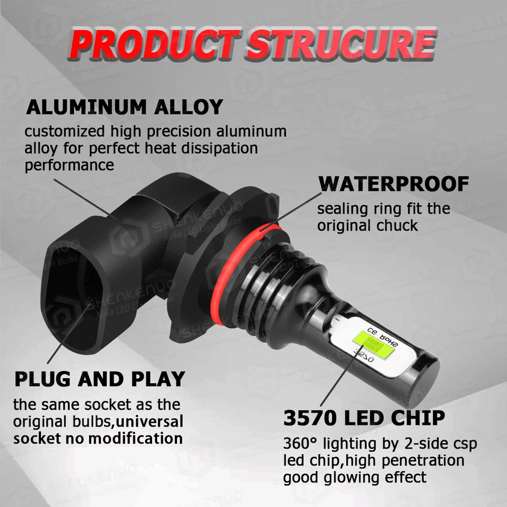 Car Light Bulb GJ Series Bulb HK Series Bulb BY Series Bulb C6 Series Bulb C9 Series Bulb S1 Series Bulb S2 Series Bulb F2 Series Bulb X7 4Side Series Bulb K9 4Side Series Bulb X15 4Side Series Bulb HID Series Bulb Other Type Bulb(Fog,DRL...etc) V5 4Side Series Bulb DF Series Bulb 6 Side Series Bulb Z4 Series Bulb LX Series Bulb DSX Series Bulb K9L 4Side Series Bulb LED Light Strip Work Light Bar Protection Sticker Car Interior/Exterior Trim Tool Promotion Other Item Description 。 NOTE: Please double check local traffic rules before order, ice blue bulbs are illegal to use in some of the states. Headlight Technical Specification: Plug Type: 9005 HB3 + 9006 HB4 LED Quantity(each bulb): 12pcs* 3570 CSP chips Luminous Flux: 11000LM/set (5500LM/bulb) Operating Voltage: DC 12V(fit 12V vehicles) Color Temperature: 8000K Ice Blue IP68 rated water and dust seal, over 50000hrs lifetime Beam Angle: 360 degree Material: Aviation 6063 aluminum profile Operating Temperature: -40-80 degree Celsius Advantage: *Latest 3570 CSP chip(USA) light source, 2 luminous faces no blind zone *Engineering beam pattern design throw more light on road evenly at appropriate angle without foggy light * 8000K Ice Blue light reflect road paint/signs better to show clearer road situation during night driving *270 degree low beam angle with cut-off line, will not dazzle oncoming traffic *Built-in constant current CPU, instant full brightness without start-up relay Install Caution: 1. As a safety precaution, make sure that the car has had time to cool down properly before starting the installation process. 2. Put the vehicle into park or make sure it is securely in gear. 3. Make sure to have the ignition turned off and the keys removed. 4. Be careful to avoid burns, especially when turning on or off the vehicles lighting. 5. Be careful to avoid crushing or cutting the bulbs. Also make sure to not touch the bulbs with your fingers, as this will cause blotting. 6. Fully examine the connection of the contact points, ports and the wires as faulty connections can cause lighting problems. 7. Make certain that the end of the bulb does not come in contact with the interior light shield of the headlight when adjusting the bulb. 8.Please install car headlight dust cover to ensure the normal operation of the lamp Package Included: 4X LED Bulbs 。 Shipping Policy Payment Method Returns Policy Shipping Policy 1) Item Located in US , We will ship all orders asap from our USA warehouse, All shipment will ship by UPS or USPS.Not include small package which less than $5. 2) Item Located in China ,We will ship from China Warehouse.( No service on Weekend and public holidays). 3) We will ship out all orders as soon as possible after payment verified, please allow up to 1-4 business days for delivery. 4) Delivery time within the U.S. is usually just 3 to 6 business days, however in rare cases it could take 6 to 7 business days. Why Choose the US Stock? 1. Us Local Shipping, No Extra Customs Cost to the US. 2. Fast Delivery: 3-6 Working days Delivery. 3. Best After-Sales Service!!! Payment Method We accept PayPal only. Payment must be made within 4 days of auction closing. (Non-payment may result in a UPI
