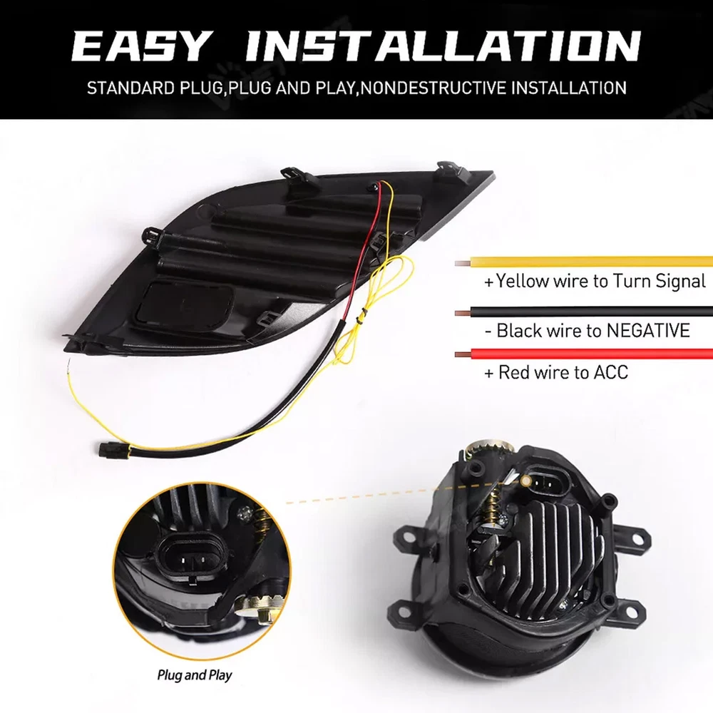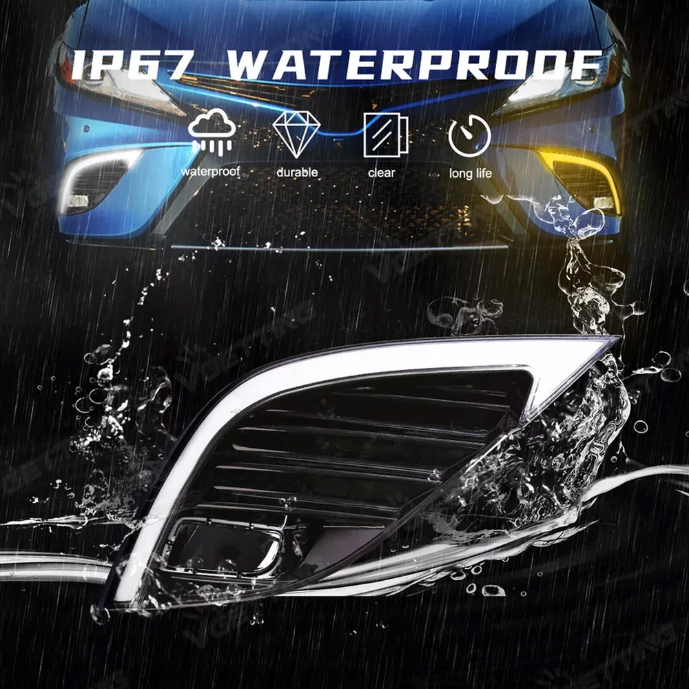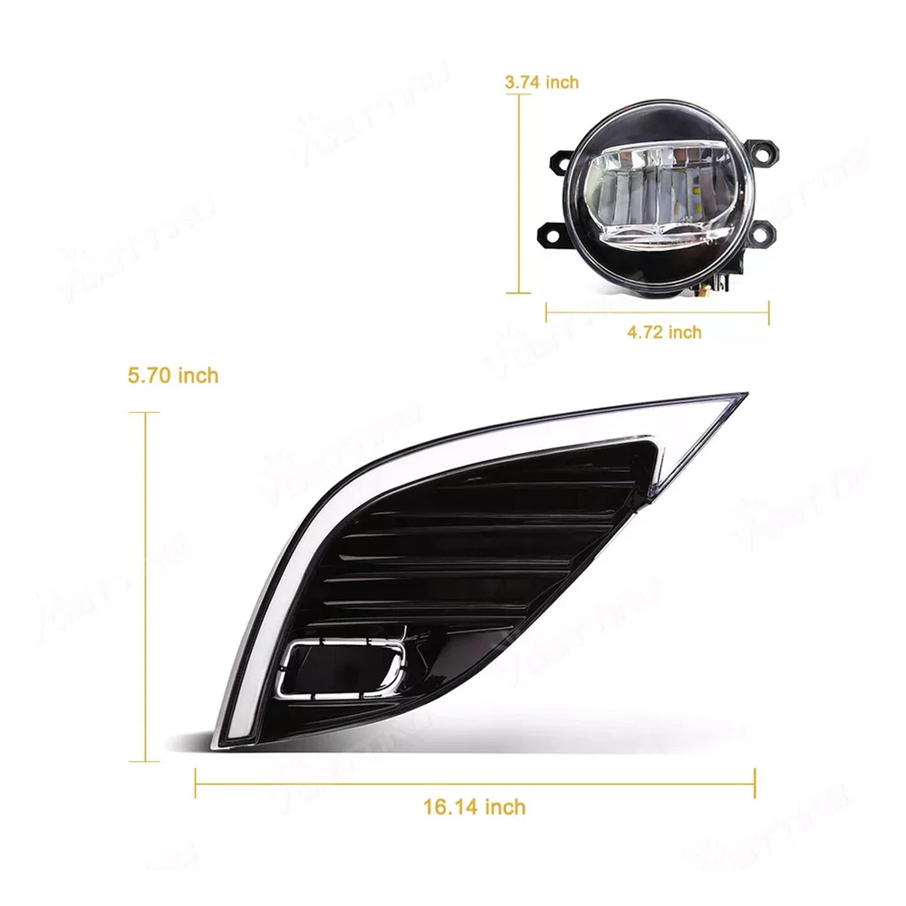 Compatible Model: For Toyota Camry SE / XSE 2018 2019 2020 For Toyota Camry TRD 2020 2021 2022 2023 2024 (Please note this product will NOT fit the LE or XLE trims) Specifications: Condition: 100% Brand new. Surface Finish: Black Working Voltage: DC 12V DRL Color: White for DRL + Yellow (Turn Signal) Fog Light color: White Material : ABS Plastic + High Quality LED Light Source: LED Features: Comes with daytime running light and turn signal two-in-one design. Safety: LED DRL provides you with a decisive safety leap in road traffic and helps prevent 58% of accidents. Durability: Professional housing design with heat sink at the back of the lamp ensures LEDs not over heated and have longer life span. Waterproof: With reverse polarity protection and open circuit protection,100% waterproof and shock resistant. Package Includes: 2x Daytime running lights (LH+RH) 1x DRL Wiring 2x LED fog lights (LH+RH) 1x fog light wiring and switch and relay Note: Installation instruction is NOT included, professional installation is highly recommended