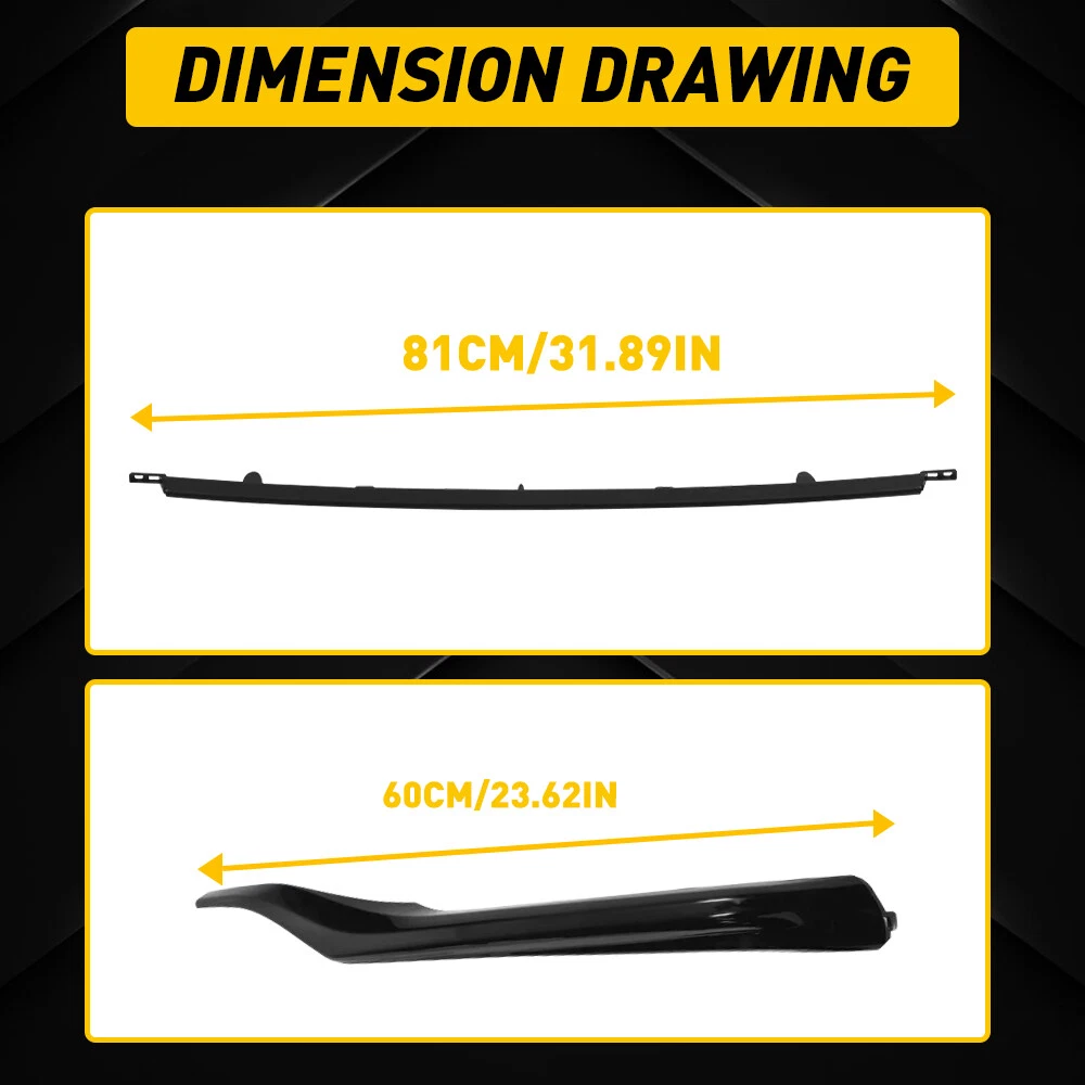 Fit for: 2021-2024 Toyota Camry SE XSE OE Number: 53122-06130,5312206130 Product Material: ABS Color: Glossy black Features: *Perfect Match Manufactured according to original car to match with your vehicle perfectly. *High Quality Our trim with the features of wear and scratch resistance provides a better shopping experience for you. *Superior Material Made of superior material to extend its long service life and durability. *Simple Installation Easy installation with direct replacement, other modifications are not required. Packaging Include: 1×Lower Center Molding For Toyota Camry SE XSE 2021-2022 Glossy Black Front Lower Grille Trim Molding S Fit for: 2021-2024 Toyota Camry SE XSE OE Number: 53122-06130,5312206130 Product Material: ABS Color: Glossy black Features: *Perfect Match Manufactured according to original car to match with your vehicle perfectly. *High Quality Our trim with the features of wear and scratch resistance provides a better shopping experience for you. *Superior Material Made of superior material to extend its long service life and durability. *Simple Installation Easy installation with direct replacement, other modifications are not required. Packaging Include: 1×Lower Center Molding 2x Lower Molding (Passenger&Driver) Item Specifics Brand AUXITO Type Bumper Placement on Vehicle Front Left Right Color Black Material ABS Finish Gloss Vintage Car Part No Manufacturer Part Number 53122-06130,5312206130 OE/OEM Part Number 53122-06130,5312206130 Performance Part No Universal Fitment No Items Included 1×Lower Center Molding,2x Lower Molding (Passenger&Driver) Country/Region of Manufacture United States Attachment Type Bolt-On Bumper Cut-Outs Same as the original Manufacturer Warranty 3 Year Features Durable Auto Part Interchange Part Number 53122-06130,5312206130 Item Height As Picture Item Length As Picture Item Width As Picture Superseded Part Number 53122-06130,5312206130 FAQ ♥ If you have a decoding problem or any other problems, please contact us first, we will help you with it. We will reply you within 24 hours in working days. I'm a new seller, thanks a lot for your trust and convince! I will serve you with all my heart. ♥ Q1: Will this bulb fit my vehicle? A: We can match almost any vehicle to one of our bulb sizes. eBay only lets us include some vehicle fitments per listing, but if your vehicle does not show up on the compatibility table at the top of our listings, welcome you to contact us for free consulation before purchasing a product. Q2: My item has not arrived, what's taking so long? A: Sometimes items take longer than expected, especially if it’s going far or to rural area. Check with your post office to see if your item has been held up. Sometimes Royal Mail will not update a tracking number until it has arrived at its destination. If your item still don't arrive after a few days, let us know so we can double check for you and help solve it asap. Q3: My bulbs won't fit, help! A: Special bulb holder may be required. See if you can take the holder from the stock bulb. If not, let us know. The bulb size may be wrong, double check the item you received with the item you ordered. Do you have an aftermarket lighting housing? These may not be perfectly fitted for aftermarket bulbs and will require some manual modifications. Q4: Neither side lighting up? Both sides flicker, hyper flash, or work inconsistantly. A:Check the light fuses, and then check the ballast plugs to insure correct installation. If this doesn't work, there may be a voltage problem with the vehicle. You probably just need a relay or capacitor. Even though some bulbs are builtin resistors, they may still need a decoder. Payment (1). We gladly accepts payment via PayPal, We will ship your item(s) within 24 hours. (2). Before payment, please keep the consistency of Paypal address and ebay address. (3). Quantity orders are welcome! Returns (1). We offer 60 days free return policy. Please contact us within 60 days from the date you receive your order if you have any issues with the product or want return. Refund will be send after we got your resend package. (2). All returned items should be in the original packaging , return tracking information should be provided . Contact us (1).Negative feedback will not help resolve any problems you have, please contact us via eBay messages before leaving negative feedback , our customer service will make best effort to help you with the issues. (2).We maintain high standards of excellenceand strive for 100% customer satisfaction! Feedback is very important to us. We request that you contact us immediately before you give us neutral or negative feedback, so that we can satisfactorily address your concerns. About us We're professional in car and motorcycle accessories, especially in LED bulbs. We have our own factory and R&D team. Our belief is to sell top quality items that fit your car and serve you with our heart. Anything please feel free to contact us! Our customer service is very responsibility. Come and follow us! DESCRIPTION PAYMENT SHIPPING RETURN POLICY CONTACT US Shop Category Store Home Other Hot Item 2PCS O2 Oxygen Sensor Up+Downstream For 08-14 Chevrolet Equinox/GMC Terrain 2.4L USD 29.99 2x H7 Super Bright LED Headlight Bulbs 60000LM Kit High Low Beam 6500K White USD 24.99 BLACK ROOF TOP TRIM MOLDINGS FOR 2006 2007 2008 2009 2010 2011 2012 TOYOTA YARIS USD 17.99 AUXITO 9012 HIR2 LED Headlight Kit Bulb High/Low Beam White 80000LM Super Bright USD 42.74 AUXITO 7440 7443 7444 LED Backup Reverse Back Up Light Bulbs Super Bright White USD 12.59 New List Item For 2012-2013 Honda Civic Coupe 2Dr OE Style Halogen Headlights Assembly Pair USD 124.99 AUXITO 7443 7444 7440 LED Backup Reverse Light Bulb Bright 6500K White 2/4Pcs USD 11.59 AUXITO 2/4x AUXITO H11 LED Headlight Kit High Low Beam Super Bright 6000K White USD 26.99 Heated Mirror Glass Driver Left Side Hand For Honda Civic DX EX EX-L 2012-2013 S USD 15.99 4M Windshield Window Trim Edge 