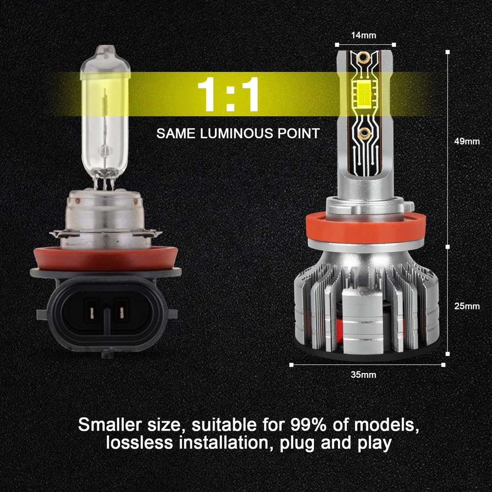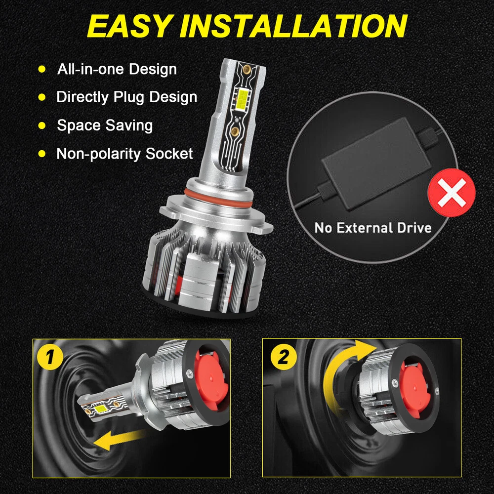 Note:Our LED bulbs only replace halogen or led headlamps.Can not replace the HID headlamps. Please double check before order. Bulbs Specifics Voltage: 9v-36v Power: 36W * 2 Lumen value: 6000LM Color temperature (color): 6000K Waterproof grade: IP68 Life: ≥50000hrs Fan: 12000 RPM Slient Turbo Fan Light source: Newest 16 PCS LED CHIP Material: Aviation 6063 aluminum profile Package Included 2pcs 9005 led headlight high beam bulbs 2pcs H11 led headlight low beam bulbs Why Choose This Bulb *IP68 WATERPOOF The lamp body can also be used normally when immersed in water No fear of any environmental challenge *WORKLING GREATUNDER ALL WEATHER Foggy、Rainy、Snowy、Haze Weather is no longer a reason to restrict travel *BULT-IN INTELLIGENT IC DRIVE Solve most computer system problems No electromagnetic interference *Smaller,More Mini Adapt to 98% of vehicles without worrying about installation problems Compatible with your vehicle better,plug and play, no modification required On Sep 25, 2024 at 20:48:13 PDT, seller added the following information: