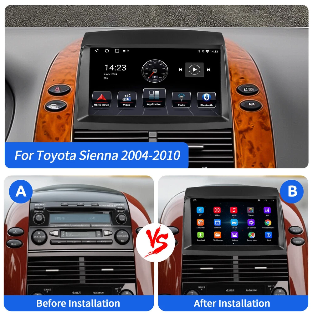 Description Features: 9 Inch Android 13 Car Radio For Toyota Sienna 2004-2010 : The Android car radio with 9" 1024*600 HD capacitive touch screen, 2GB RAM and 32GB ROM allows you to download your favorite apps and videos, so that driving will never be boring .No additional frame, no cable change, plug and play. MIRROR LINK & APPLE CARPLAY & ANDROID AUTO : With this car radio, you can experience the amazing Mirror Link function, compatible with iOS and Android phones. You can mirror your smartphone screen to the car radio using apps like Google Maps, Spotify, Youtube, etc. Replace your cell phone with the car screen and turn your vehicle into a smart platform. Immerse yourself in a seamless and user-friendly infotainment experience with Apple CarPlay & Android Auto. Connect your iPhone to Apple CarPlay or your Android smartphone to Android Auto and securely access calls, texts, navigation, music and more. With intuitive operation via the touchscreen or voice control, you have all functions at your fingertips while you remain safely at the wheel. Use your favorite apps and stay connected at all times while keeping your eyes on the road. Turn your vehicle into an extended hub for your mobile devices and experience a new dimension in infotainment. Navigation System & WiFi : Support WiFi connection. After connecting the WiFi, you can download any APP from App Store, e.g. B. Youtube, Tik Tok, Spotify, etc. Car stereo with GPS, accurate positioning, stable signal, support using online or offline maps, no longer worry about getting lost when you are driving. Independent antenna ensures strong WiFi reception. RDS/FM Radio & Bluetooth & ASP Sound Setting : Supports Bluetooth 4.1, with built-in microphone so you can make hands-free calls while driving. Support access to phone book, music playback interface, etc. RDS supported. You can save 18 FM radio stations. Built-in ASP chip. Supports 32-band EQ setting, which can be adjusted according to your personal preference. Which is very similar to your original sound. 4 x 45W amplifier, surround sound and subwoofer output AHD Rear View Camera Input & Steering Wheel Control : After connecting to the rear view camera. The radio automatically displays the reversing image as soon as you engage reverse gear. Make your daily reversing safer. Support AHD camera. Support original car steering wheel control to make driving more convenient and safer Technical specifications: System: Android 13 Screen: HD capacitive touch screen CPU: 4x Cortex-A53 1.3GHZ Memory: 2GB (RAM) + 32GB (ROM) Radio band: FM Radio frequency: FM 87.5M-108M Radio Data System (RDS): RT, AF, TA provides all the FM channel information you need(europe only). Mosfet output stage: 4 x 45 watts for maximum power Bluetooth: 4.1 Audioformat: MP3, FLAC, APE, WMA, WAV, AAC, AMR Videoformat: AVI, ASF, MP4, MOV, MPGMPEG1 / 2/4, VOB, MKV, FLV, TS, WMV, RMVB, 3GP OSD Menu Language: English, German, French, Italian, Spanish, Portuguese, Russian, Turkish, Polish PLS Note: Vehicle compatibility may vary based on options, production dates, and installation. Please inquire before purchasing. Package List: 1 x 9" Android Car Radio 1 x Radio Frame 1 x GPS Antenna 2 x USB Cable 1 x Power Cable 1 x RCA Cable 1 x Instruction manual Detail Image Warranty Return policy Products with quality problem in 30 days can be returned and refund /replaced (Item in resalable condition) Products with quality problem in 1 year can be returned and repaired. (For more details, please read our warranty policy). Welcome back to our store Customers satisfaction is our top priority.