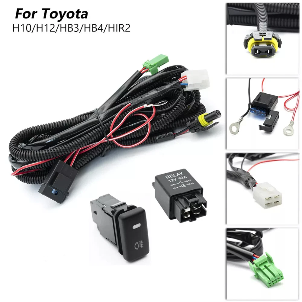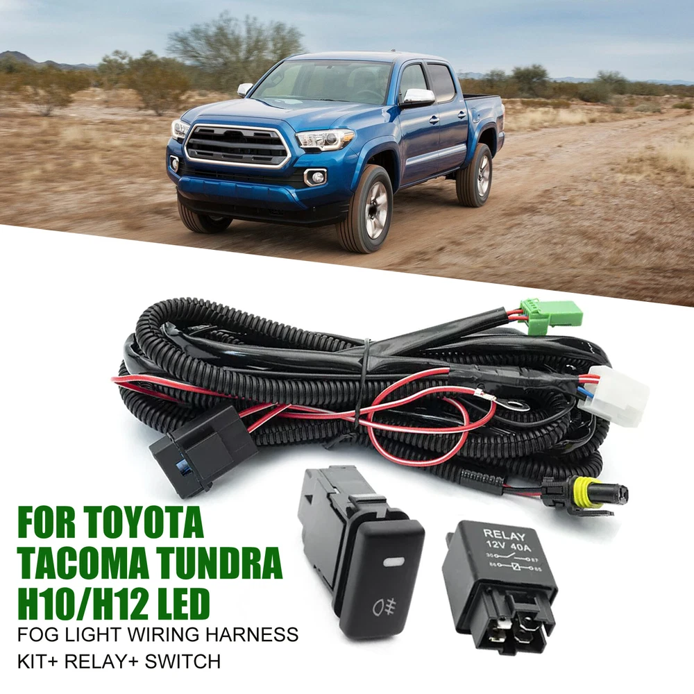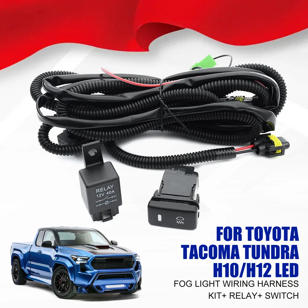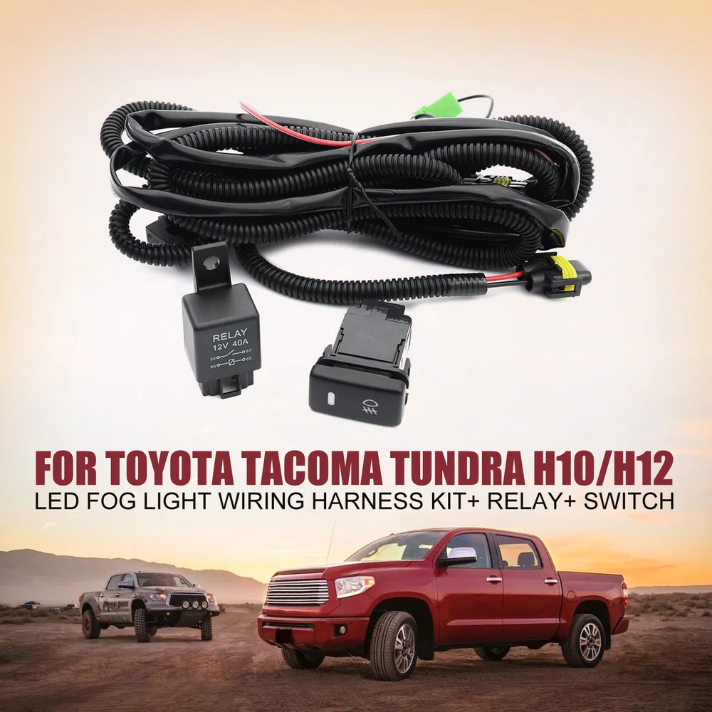 For Toyota Tacoma Tundra H10/H12 LED Fog Light Wiring Harness Kit+ Relay+ Switch Features: Wire Gauge: 16AWG Wire Material: Bare Copper Wire+PVC Cable+Corrugated Tube High quality materials used, durable to use with long service time 40A 12V SPST make and break relay & 15A ATO regular blade fuse for multiple safeguards Applied to H10/H12/HB3/HB4/HIR2 socket add-on fog lights/LED work light assembly with very easy installation Plug and play, no splicing wires needed The On/Off switch is press button type can be easily controlled on center console Realize the functions of turning fog lights on/off independently Switch a high current circuit using a low current circuit Can effectively isolate high current to protect circuit safety and electricity safety Wiring Tips: Black wire round terminal tab -- negative/ground Red wire round terminal tab -- ACC (you can cut the tab if in need) White plug -- Relay Green plug -- Push Button Switch Fitment: For American vehicle models: 2003-2009 Toyota 4Runner 1999-2007 Toyota Land Cruiser 100-series 2007-2014 Toyota FJ Cruiser 2001-2007 Toyota Highlander 2004-2005 Toyota Prius 2005-2007 Toyota Sequoia 2004-2008 Toyota Solara 2005-2022 Toyota Tacoma 2005-2006 Toyota Tundra 1998-2006 Lexus LX470 2003-2004 Lexus GX470 For European vehicle models: 1998-2007 Toyota Land Cruiser 100 2002-2009 Toyota Land Cruiser 120 Prado 2005-2011 Toyota Hilux 2004-2005 Toyota Prius Package Includes: 1x H10 H12 Wiring Harness Kit 1x 4-pin Relay 1x Push Button Switch