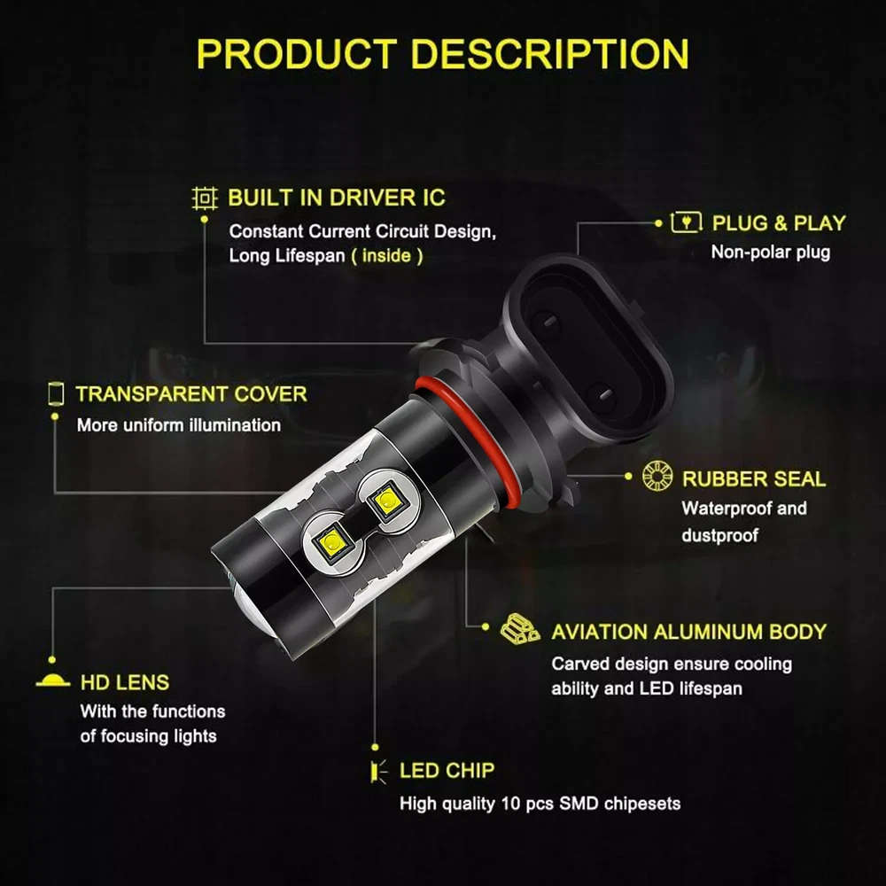 This package includes 9005 High Beam Headlight + H11 Low Beam Headlight + 9006/9145 Fog Light Bulbs. LED Headlights Bulbs: 9005/H11 LED replacement bulbs are engineered for superior performance, exceptional looks, and increased safety. Especially designed for upgrading the Headlight bulb Bulb Size: 9005(=HB3), H11(=H8) Beam Type: High Beam / Low Beam Color Temperature: 6000K - White Wattage: 50W Lumens: 5500LM Working Voltage: DC 9V to 36V Waterproof Level: IP68 Material: Aluminum alloy Lifespan: > 50,000 Hours Product Advantages: High brightness: The latest cob with 6000K cool white LED chip; 300% brighter than the existing halogen headlights. Advanced technology ensures perfect beam patterns without any black spots. Glow on all sides: 360 degree no dead angle lighting, use more clear and bright at night Strong heat dissipation: equipped with highly silent heat dissipation fan, speed up to 12000/min, heat dissipation efficiency, can avoid temperature accumulation on the beads, prolong the service life of the beads. IP68 waterproof: using integrated radiator and aluminium body self-cooling, waterproof and heat-proof. Even in extreme cases, the enclosure of the rainproof driver can work properly. Automatic short circuit protection. Simple Installation: Installation only takes 10 minutes. No relay. There is no capacitor. No additional wiring. Plug and play. LED Fog Lights Bulbs : Bulb Size: 9006/9145 Voltage: DC 9V to 36V Color Temperature: 6000K Wattage: 50W Lumens: 5500LM Color: White Lifespan: >50, 000 hrs This new product has high luminous efficiency, low power consumption and long service life. Easy installation, Direct plug in and play. Best used for Fog/ Driving lights/ Daytime Running Light DRL Faster on/ off response time Energy saving, environmental protection, Stable performance, through strict test, Use safer driving Why Use LED Headlight Bulb? If you find this listing, you are must looking for brighter white headlight bulbs with an excellent beam pattern for upgrade. Congratulations, you find what you want now! LED headlight bulbs is a successful replacement for Halogen bulbs, it is brighter and more reliable, perfect for high-beam (and also low beam, fog, & driving lights) use. With it, you will get much better night driving, and also, much better seen during the day. Package Included: 2 x LED High Beam Bulbs 2 x LED Low Beam Bulbs 2 x LED Fog Light Bulbs New and old packaging will be shipped randomly!! Install Caution 1. As a safety precaution, make sure that the car has had time to cool down properly before starting the installation process. 2. Put the vehicle into park or make sure it is securely in gear. 3. Make sure to have the ignition turned off and the keys removed. 4. Be careful to avoid burns, especially when turning on or off the vehicles lighting. 5. Be careful to avoid crushing or cutting the bulbs. Also make sure to not touch the bulbs with your fingers, as this will cause blotting. 6. Fully examine the connection of the contact points, ports and the wires as faulty connections can cause lighting problems. 7. Make certain that the end of the bulb does not come in contact with the interior light shield of the headlight when adjusting the bulb. 8. Please install car headlight dust cover to ensure the normal operation of the lamp (to prevent dust and small ribbons to reduce the chances of bulb cooling fan broken to ensure the normal operation of the cooling system) Note After installation, dust prevention measures must be done, LED lamp life depends on the cooling performance is good or bad. The lamp heat mainly active cooling (fan-cooling based, supplemented by the whole aviation aluminum heat dispassion ) as the main cooling method, the life of the fan in lamp bulb directly affects the life of LED lights On Nov 21, 2024 at 02:54:16 PST, seller added the following information:
