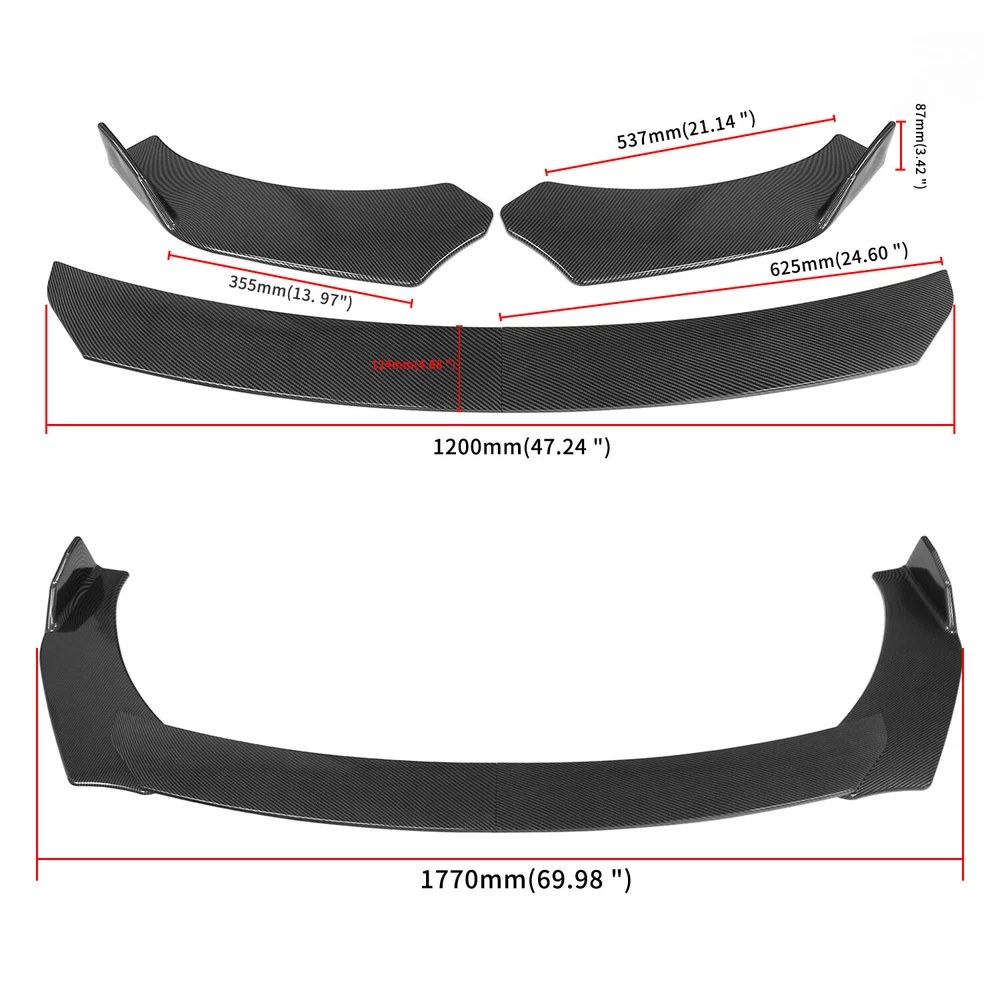Front Bumper Lip Specification: -Type:Front Lip Chin Bumper Body Kits -Material:ABS -Color:Carbon Fiber -Weight:1768g -Placement on Vehicle:Front;;Lower -Fitment Type:Performance/Custom Feature: -Direct Fit. -Easy install and durable use. -Great quality and great Fitment. -Correct Connector No cutting or splicing. -Strict quality control standards to Build and test. -It'll give you a sporty look without making it too aggressive. -Light in weight and enduring, different optical line comes from different points of view. *Instruction Not Included, Professional Installation Is Highly Recommended.* Strut Rods ★ Length: The length can be adjustable from 5.9" to 11" (200-330mm) ★ Material: Stainless Steel ★ Quatity: 2 x Stainless Steel Bumper Lip Splitter Tie Rod Bars. ( Stainless steel has weldability, corrosion resistance and heat resistance.) ★ Position: This exquisite and compact lever is mainly fixed on the body components (front and rear surround, skirt, head and tail lip), and can also be installed in the car center console or interior trim panel ★ Require: Product will require drilling holes into the bumper and/or lip/diffuser to attach safely to the vehicle. Package Included: 1set Front Lip Chin Bumper Body Kits 2 X Strut Splitter Rods On Sep 28, 2024 at 14:08:48 PDT, seller added the following information: On Jan 8, 2025 at 14:42:09 PST, seller added the following information: