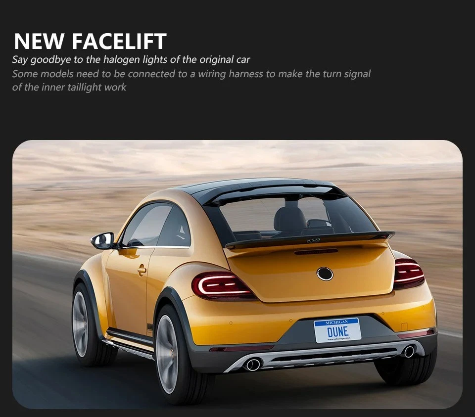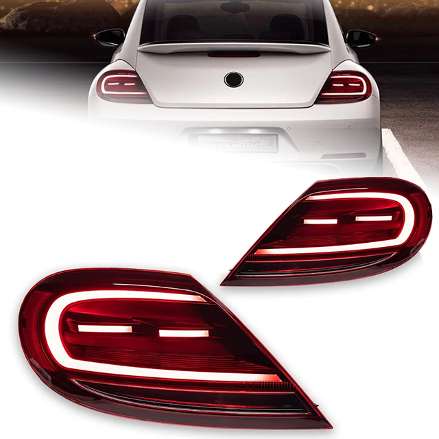 For VW Beetle 2013-2019 Red LED Tail Lights w/ Sequential Turn Signal Rear Lamps
