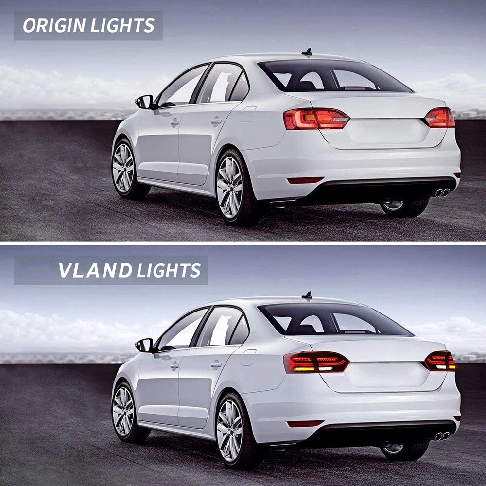 For Volkswagen Jetta MK6 2011-14 FULL LED Red Tail Lights Assembly w/Sequential NOTE: 【PRE-OWNED】Basically new, slight scratches or slight installation marks on the appearance.The outer packaging is old. If you want to buy brand new taillights, please click: Fitment: 2011 2012 2013 2014 VW Jetta/ Sagitar( Not Fit 2013 Jetta GLI and Factory Led Version) Item Features: Running Light: LED (Red) Brake Light: LED (Red) Reverse Light: LED (Diamond White) Turn Signals: LED (Amber. With Sequential Indicators) Housing Color: Black Lens Color:Red Housing Material: ABS, PMMA, GLASS Lens Material: PC Operating Voltage: 12V 35W Light Bar: LED 6000K Bulb: None (re-use original) Package includes: 1 pair of taillights with left side & right side. This item has the same connections and wires with the original taillights. It is easy to installing (Professional installation recommended). Warranty: One Year You May Also Like: 👇 SPECIFIC SHIPPING ABOUT PAYMENT RETURN SPECIFIC SHIPPING ABOUT PAYMENT RETURN VLAND Headlights VLAND Tail Lights VLAND Combination Set VLAND Bulbs For Chevrolet For Dodge For Ford For Honda For Mitsubishi For Hyundai For Lexus For Toyota For BMW For GMC For Volkswagen For Tesla For Subaru Other On Jan 2, 2025 at 20:27:22 PST, seller added the following information: