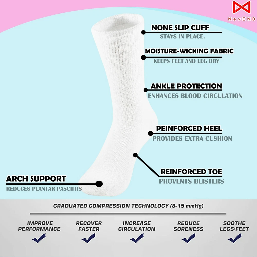 For Womens Non Binding Top Physician Approved Circulation Diabetic Crew Socks Product Specification: Color: Black, Grey, White Department: Women Material: 90% Cotton 7% Polyester 3% Elasthane Machine wash warm with like colors, tumble dry medium. Use only non-chlorine bleach when needed. Feature: Super Comfort: The diabetic socks made of 90% Cotton 7% Polyester 3% Elasthane, the material are breathable, soft and well-fitting, the USbingoshop socks are bound to meet all your demands. Perfect for Therapeutic: Physician Approved Therapeutic Highest Quality Socks,These top notch, non-binding socks feature a loose knit design that provides proper cushioning without squeezing or constricting your legs in any way. Excellent Blood Circulation: These must have diabetic socks are physician approved and highly recommended for people with diabetes, edema, and neuropathy caused by circulatory problems. These therapeutic, medical socks will allow your blood to flow unimpeded, helping you face all the conditions mentioned above. Shipping All orders will be shipped through USPS First Class and Priority Mails depends on the weight of the items. Shipping is complimentary within the lower 48 US States. All items ship within 1 business after payment is comfirmed For large items that require Freight shipping a valid phone number is required to call and schedule your delivery Returns All items qualify for returns within 14 days of receipt. Buyer pays return shipping. Please be sure this is an item you want before making your purchase. Customer Satisfaction is our TOP priority! All items are IN STOCK at time of listing. Returns are shipped at the customer's risk. We cannot take responsibility for items which are lost or damaged in transit. For purchases where a shipping charge was paid, there will be no refund of the original shipping charge. Communication & Feedback: Your 5-Star Positive Feedback helps us develop and improve our business and helps us lower our eBay fees. Please give us the Positive Feedback when the item arrives to your satisfaction. Our policy is to provide complete satisfaction with the product. We provide open, honest, prompt and clear communication with our buyers. If you have any concerns or are not completely satisfied, please contact us ASAP to allow us to resolve the issue in the best possible manner without opening a case via eBay and without negative feedback. We give positive feedback to all our buyers who pay promptly, generally as soon as we ship the item.