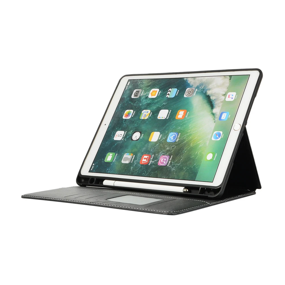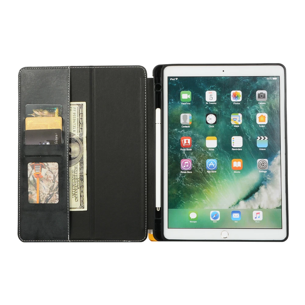 Features: 1. 100% Brand New and made from synthetic leather. 2. Card slot is designed for you to put debit card, credit card or ID card while on the go. 3. Support Stand function,more convenient for your daily use. 4.Complete access to all buttons and camera without having to remove the case. 5. Easy to use, Elegant construction and stitching. Package included: 1 x Case Cover (Not included iPad,Screen protector,Pencil) Please check back bottom of your iPad to find one of these model numbers Choose Model Name iPad Model Number Screen Size(inch ) For iPad 5th Gen (9.7"2017) A1822/A1823 9.7 For iPad 6th Gen (9.7"2018) A1893/A1954 9.7 For iPad Air 1(9.7"2013) A1474/A1475/A1476 9.7 For iPad Air 2(9.7"2014) A1566/A1567 9.7
