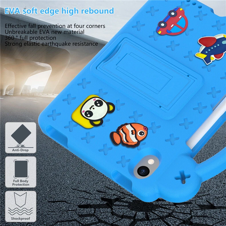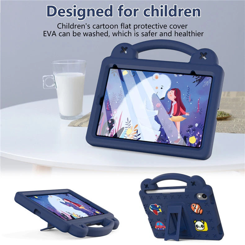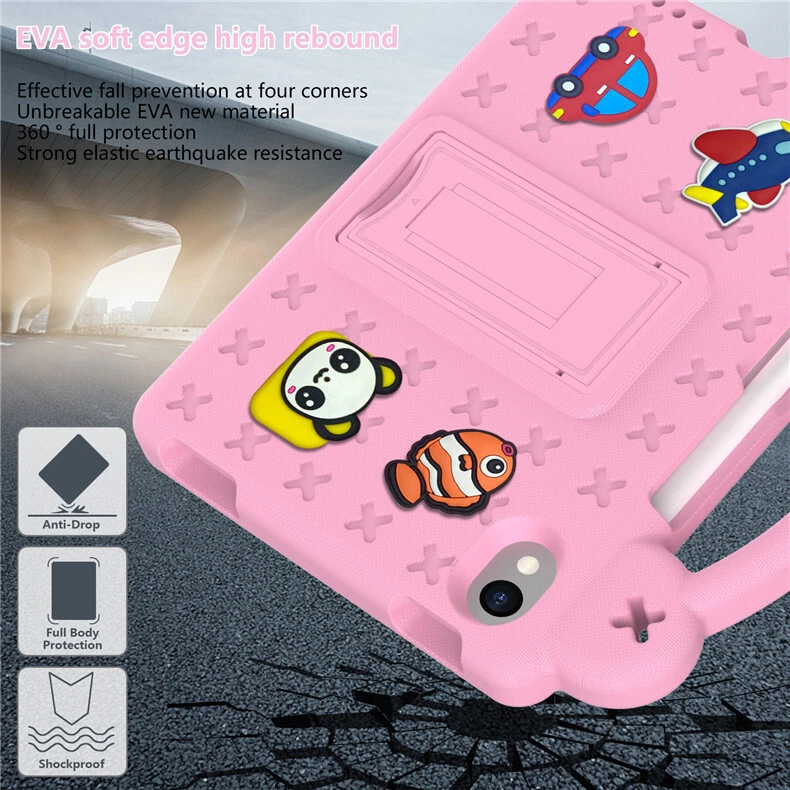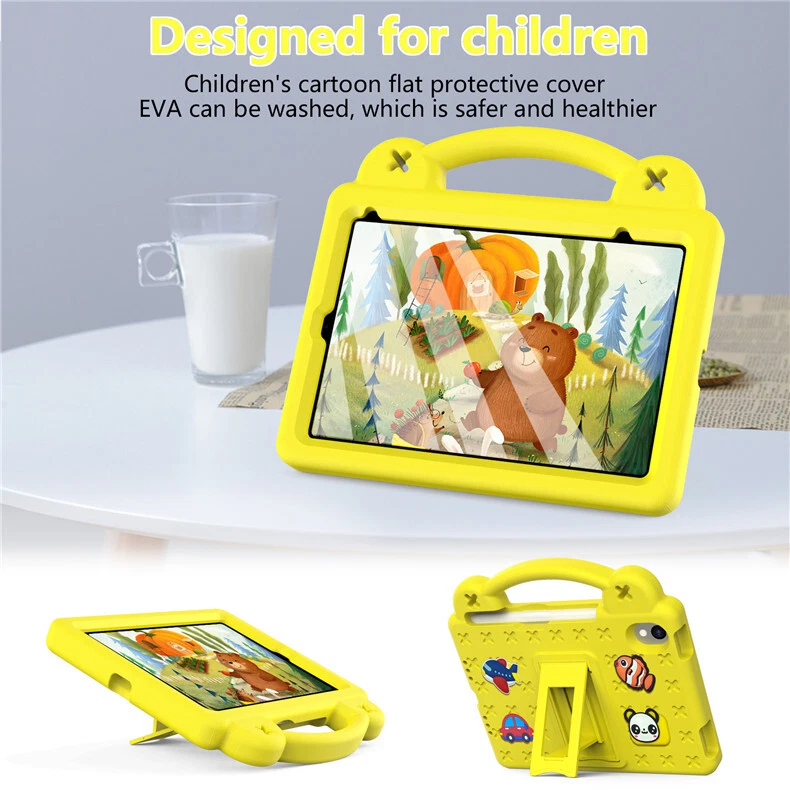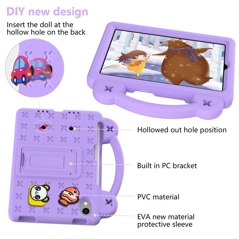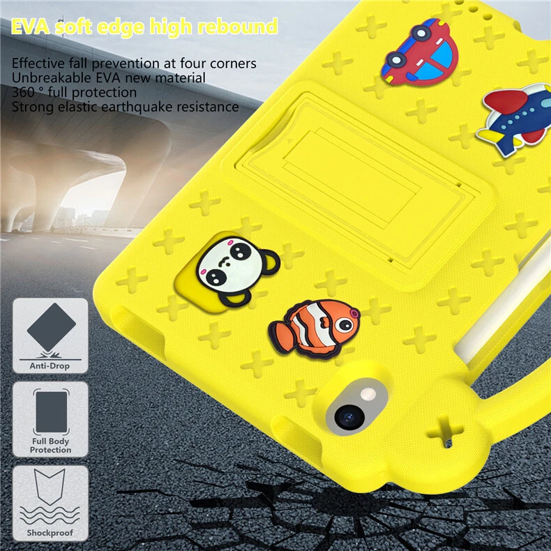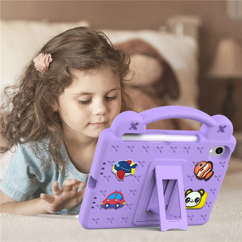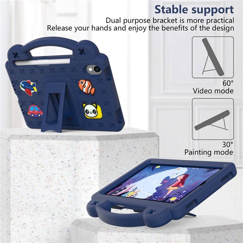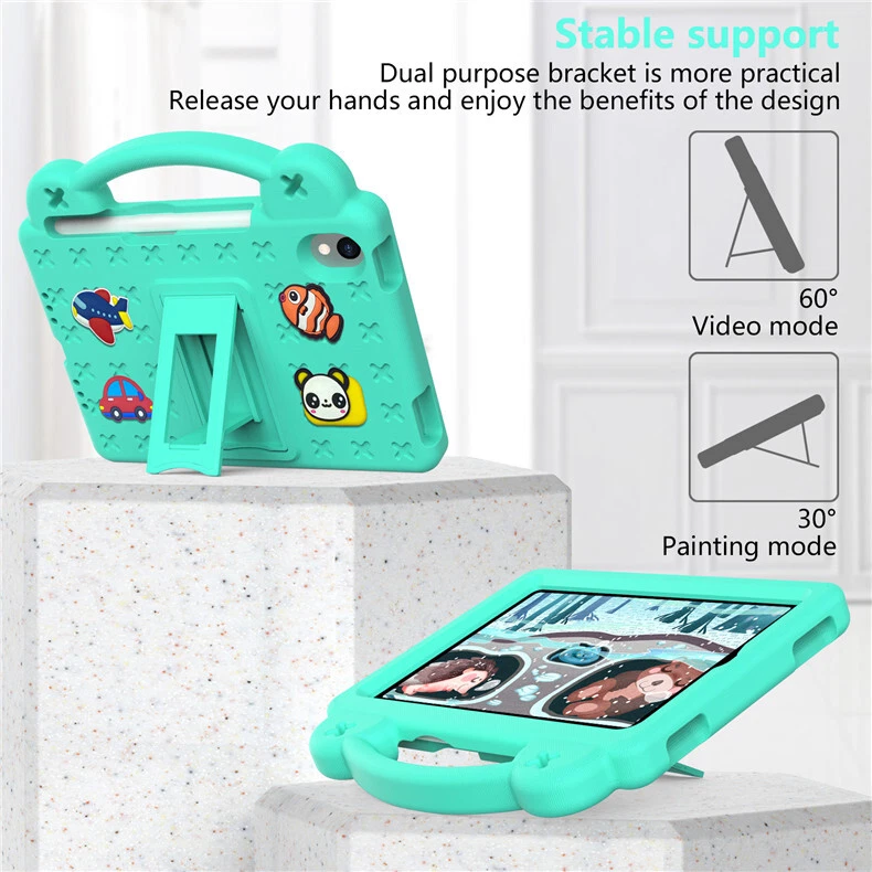 Attention: For iPad Mini 1st 2nd 3rd 4th 5th Gen 7.9” without pencil slot, all other models with pencil slot PLEASE CHECK THE MODEL OF YOUR IPAD ON THE BACK TO MAKE SURE IT MATCHES ONE OF THE MODEL NUMBERS IN THE TABLE BELOW Choose Model Name iPad Model Number Inch For iPad Mini (1st 7.9"2012) A1432/A1454/A1455 7.9 For iPad Mini (2nd 7.9"2013) A1489/A1490/A1491 7.9 For iPad Mini (3rd 7.9"2014) A1599/A1600 7.9 For iPad Mini (4th 7.9"2015) A1550/A1538 7.9 For iPad Mini (5th 7.9"2019) A2133/A2124/A2125/A2126 7.9 For iPad Mini (6th 8.3"2021) A2567/A2568/A2569 8.3 For iPad 5th Gen (9.7"2017) A1822/A1823 9.7 For iPad 6th Gen (9.7"2018) A1893/A1954 9.7 For iPad Air 1(9.7"2013) A1474/A1475/A1476 9.7 For iPad Air 2(9.7"2014) A1566/A1567 9.7 For iPad Pro 9.7" (2016) A1673/A1674/A1675 9.7 For iPad Pro 10.5 (2017) A1701/A1709/A1852 10.5 For iPad Air 3(10.5"2019) A2154/A2152/A2153/A2123 10.5 For iPad 7th Gen (10.2" 2019) A2197/A2198/A2199/A2200 10.2 For iPad 8th Gen (10.2" 2020) A2430/A2429/A2428/A2270 10.2 For iPad 9th Gen (10.2" 2021) A2602/A2603/A2604/A2605 10.2 For iPad Pro11 2018 A1979/A1980/A1934/A2013 11 For iPad Pro11 2020 A2228/A2068/A2230/A2231 11 For iPad Pro11 2021 A2301/A2377/A2459/A2460 11 For iPad Air 4(10.9"2020) A2316/A2324/A2325/A2072 10.9 For iPad Air 5(10.9"2022) A2588/A2589/A2591 10.9 For iPad 10th Gen (10.9" 2022) A2696/A2757/A2777 10.9 For iPad Pro11 2022 A2759/A2435/A2761/A2762 11 For iPad Mini (A17 Pro) 2024 A2995/A2996 8.3 Description: -Made of heavy duty thick EVA foam, family can rest assured to let children play with tablet. -This heavy duty case offers extreme rugged protection for Wear and tear and impact. -The soft environmental protection material, won't hurt you kids. -Allow easy access to all ports on the iPad, touch ID function, sensors, speakers and cameras. It's also a very thoughtful and practical perfect gift for kids, boys, girls, teens, Big boys, familys and friends. -Acts as stand for vertical or horizontal viewing. -Perfect fit, access all function without removing the case. - Because of different models, the holes of the protective case are also different. DIY Cartoon Design The cute cartoon can be moved from one hollow to another Solid Kickstand The feet of the cartoon double as a tablet stand support for viewing in landscape and vertical form Carrying Handle The carrying handle makes it easy for toddler to carry the tablet around Package included: 1x Case Cover For iPad(Case Only, iPad, Pencil and Screen Protector Not Included)