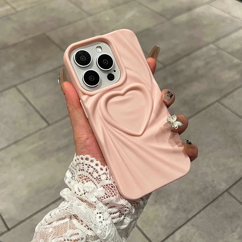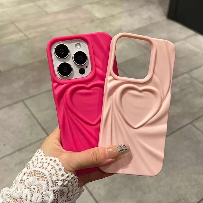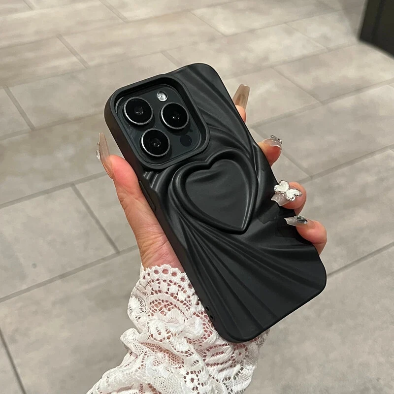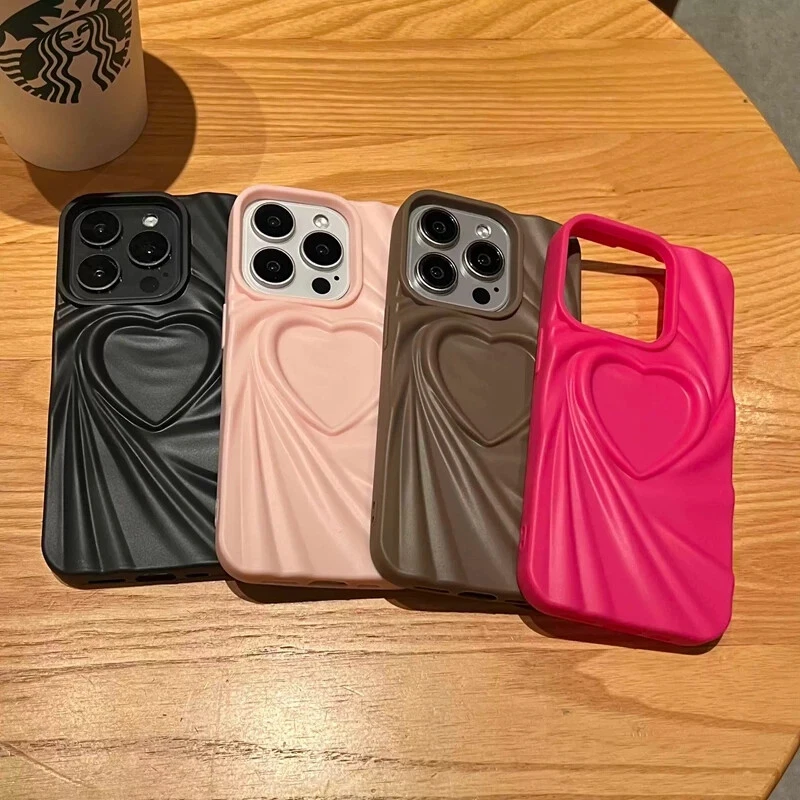 For iPhone 11 12 13 14 15 Pro Max Plus Matte Soft Silicone Love Heart Phone Case