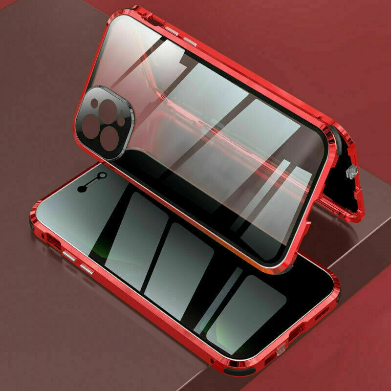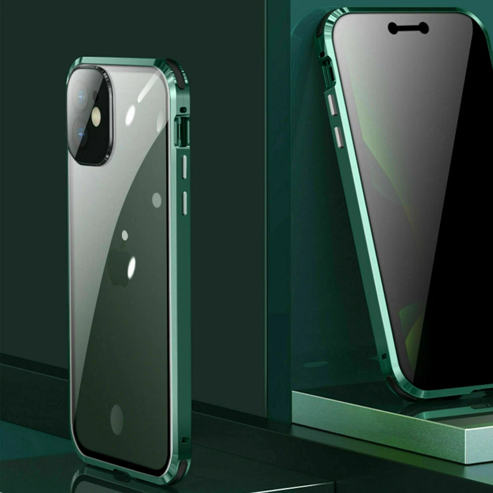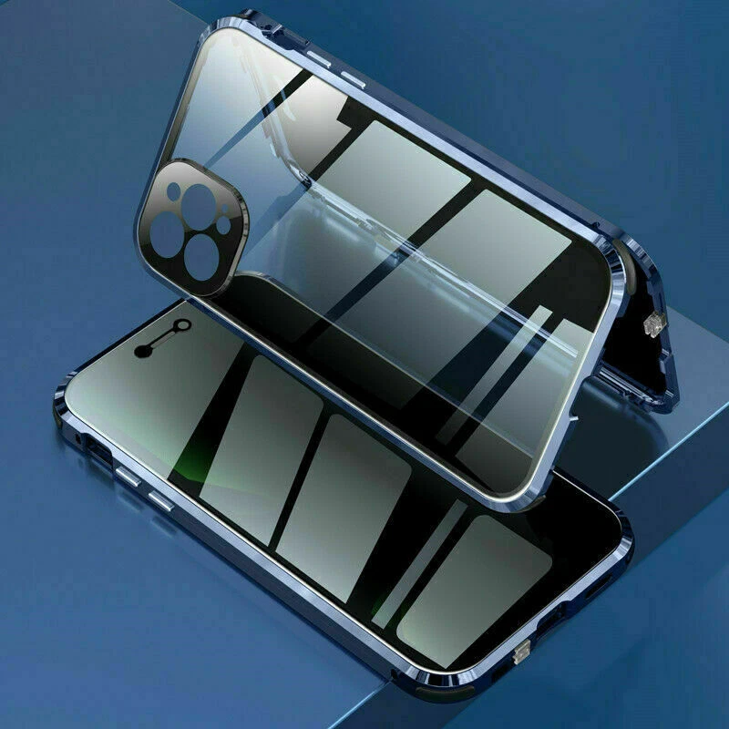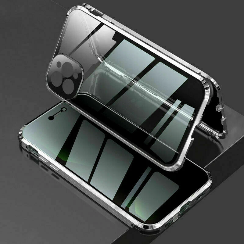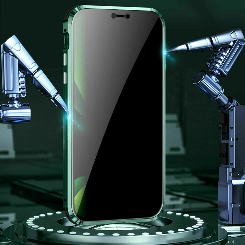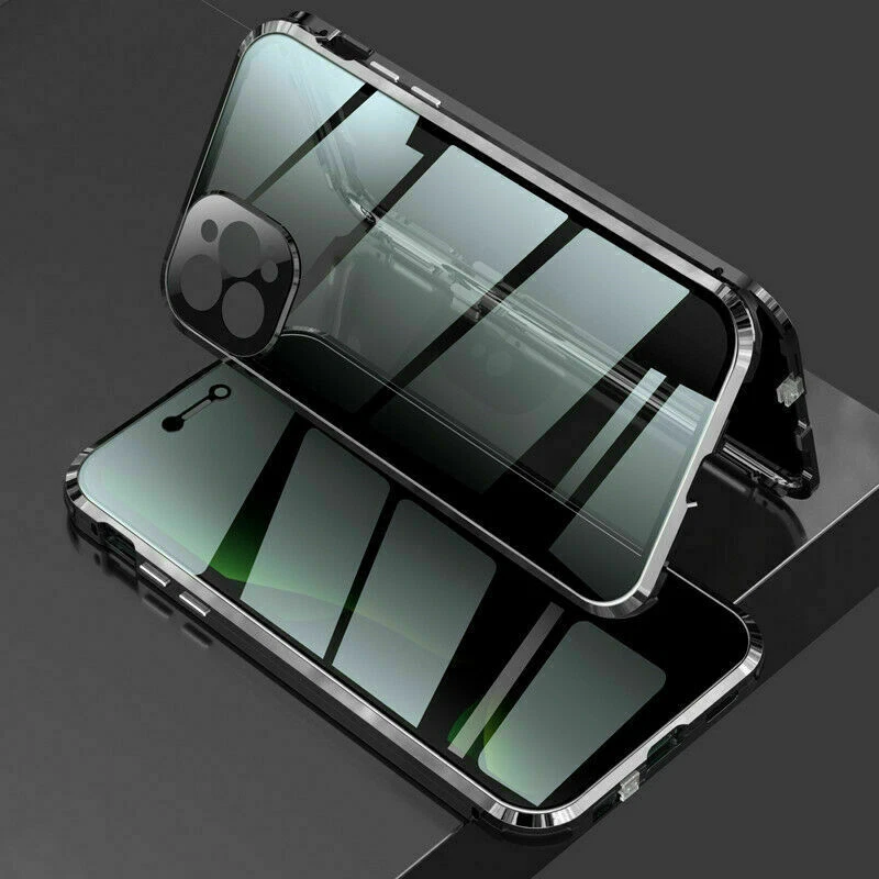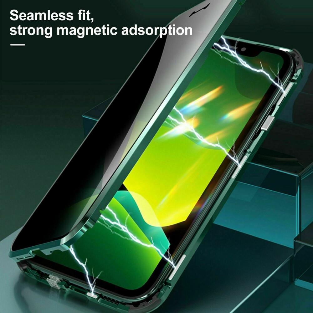 Description Features: [Magnetic Adsorption Technology]: Multipoints and strong magnetic adsorption technology make the case seamless, interesting and easy to install and remove from your phone [9H Tempered Glass front and back] : The front and back is made of 9H tempered glass to showoff the original phone design and preserve the phone\\\'s natural look. [Metal Frame]: Metal frame provide protection against drops, shock, and looks luxury [Precise Cut Outs]: Fits well to your device and make it easy to access to all ports, speakers, chargers and all Phone features. [Privacy protection]:New upgrade Anti-peeping design [Material]:Tempered Glass+Metal Package included: 1* Anti-peeping Tempered Glass Magnetic Case