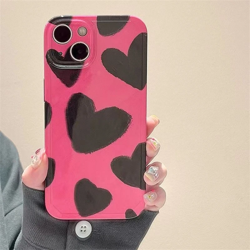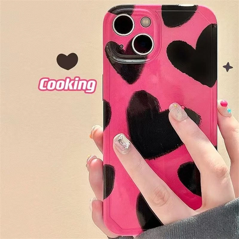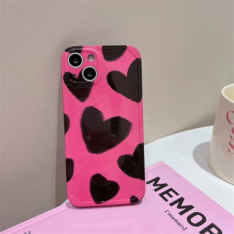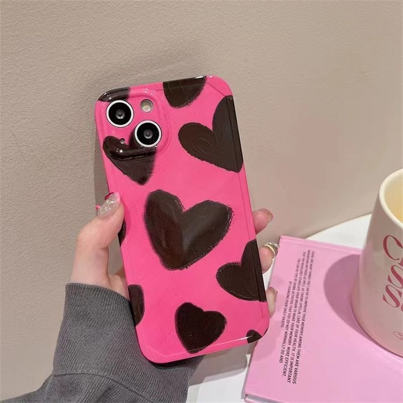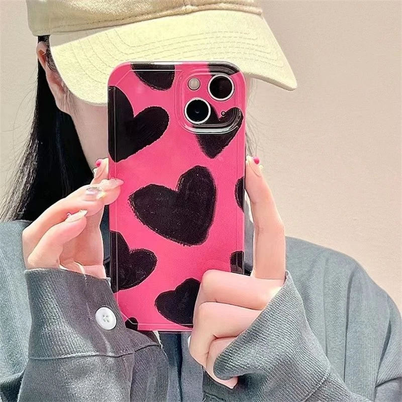 For iPhone 14 13 12 11 Pro Max plus Pink Ink Oil Painting Love soft phone case