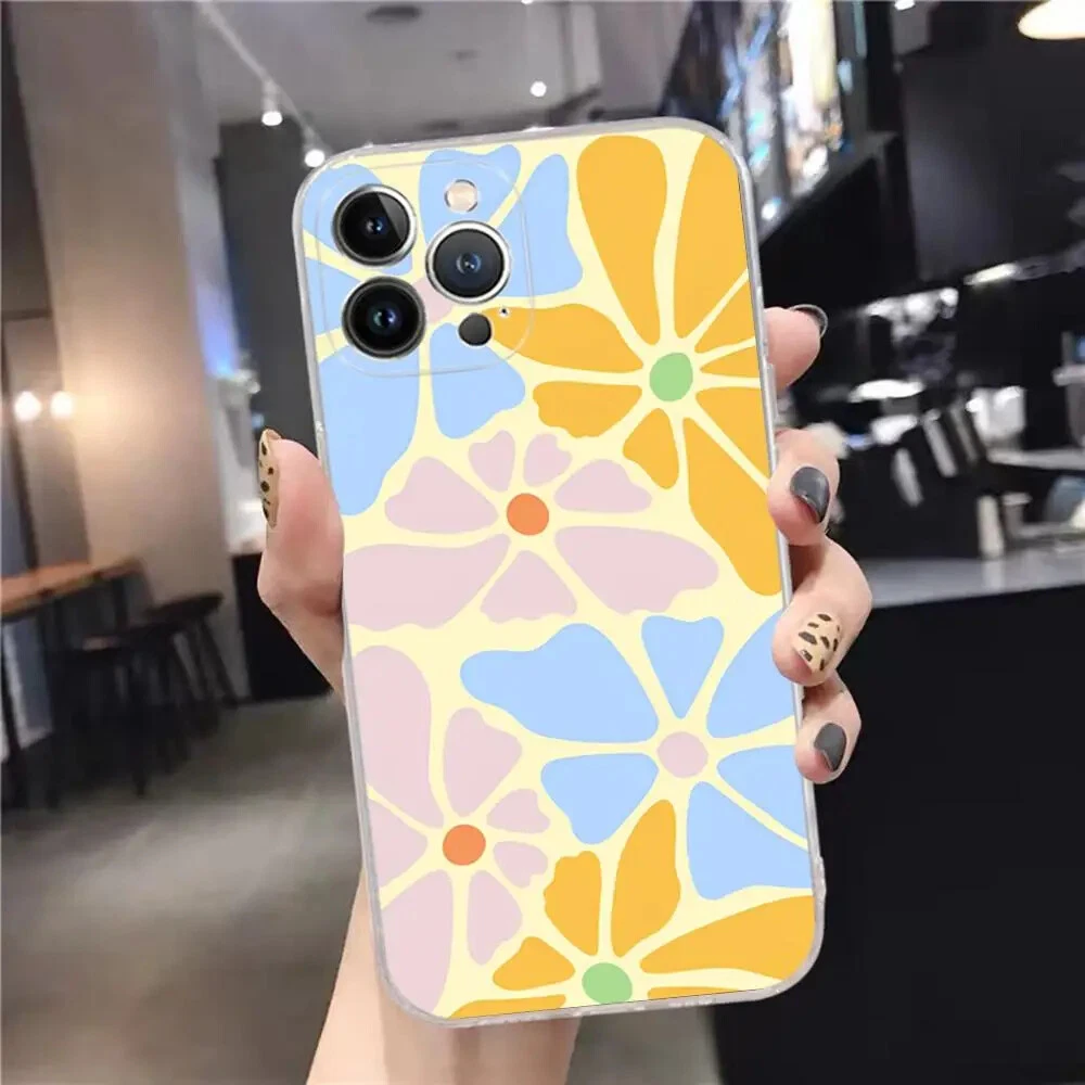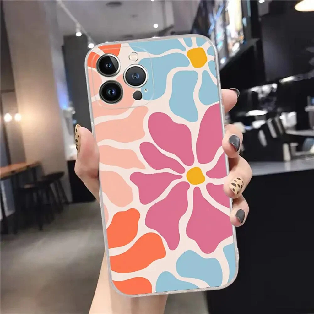 For iPhone 15 14 11 12 13 Pro Max Plus Abstract Flower Phone Case