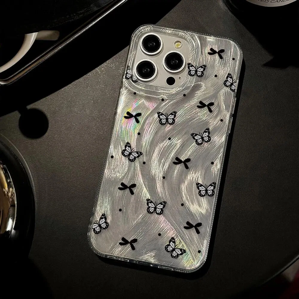 For iPhone 16 15 Pro Max 14 13 12 11 Plus Black Butterfly Matte Phone Case
