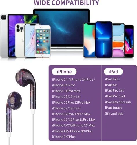 For iPhone 7 8 Plus X XS MAX XR 11 12 13 14 Wired Headset Earbud Headphones gift Features: 1.High-Quality Sound: The earbuds uses a high-quality composite diaphragm sound unit, and the sound is pure and natural. No matter what style of music you like to listen to, the headphones can balance the sound range. 2.Excellent Microphone Quality: Chatting with friends and family online requires a reliable microphone. With this headset's built-in HD microphone, your friendly voice will reach each other's ears without loss. 3.Perfect Stereo Sound & Noise Reduction Design: Ergonomic and ultra-lightweight in-ear designed with solid sound-insulating material, reduces external noise while minimizing the sound leakage, giving you clear sound. 4.Excellent Compatibility: Works with all devices that have Li-ghting connector and support iOS 10 or later, including compatible with iPhone 11/11 Pro/iPhone X/XS/XS Max/XR, iPhone 8 & 8 Plus/7 & 7 Plus, iPad Pro/Mini 4/Air 2. 5.New Pop-up Headphones: You need to first open Bluetooth on your phone, then insert the headset into the iPhone, a pop-up window will appear in a few seconds, you need to click "Connect with iCloud". (The second or later insertion of the phone will automatically connect) Product description: compatible with: FOR iPhone 14/14 Pro/ 14 Pro Max FOR iPhone 13/13 Pro Max FOR iPhone 12/12 Pro Max FOR iPhone 11/11 Pro X/XS/XS Max/XR FOR iPhone 8/7 Plus, iPad Pro/Mini/Air 2 FOR iPad Pro/Mini/Air 2 Package Includes: 1 * Wired Headphone Note : You need to first open Bluetooth on your phone, then insert the headset into the iPhone, a pop-up window will appear in a few seconds, you need to click "Connect with iCloud". (The second or later insertion of the phone will automatically connect)