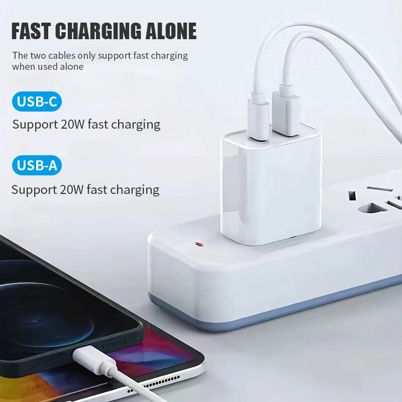 Features for Wall Charger: Made of high quality ABS material,ensuring durability and a smooth finish. Standard AC charger (US plug) Wide Compatibility: Ideal for almost all Phones, Electric Appliance, MP3 players, smartphones, e-book readers, Bluetooth speaker, more Auto adjustable 100-240V input fits world travelers in most countries High-Speed Charging: The USB-C port supports a maximum power output of 20W. Dual Port Fast Charging:Charging faster and safer than 1A adapter (Charge your iPhone 15 up to 50% capacity in just 30 minutes with the original cable. ) Auto stop charging after full charged, save energy and keep it safe Portable design, convenient to carry Light Weight: 40g (1.1oz) Compatible with: For iPhone 15/15 Plus/15 Pro/15 Pro Max(Type-c to Type-c Cable) For iPhone 14/14 Plus/14 Pro/14 Pro Max For iPhone 13 Pro Max/13 Pro/13/13 Mini For iPhone 12 Pro Max/12 Pro/12/12 Mini For iPhone 11/11 Pro/11 Pro Max For iPhone X/XS/XR/XS MAX For iPhone SE 2020 For iPad Pro 12.9" 2018/2020 For iPad Pro 11" 2018/2020 For iPad Air3 10.5" For iPad Mini5 7.9" For iPad For Samsung Galaxy S20/S20+/S20 Ultra For Samsung Galaxy S21/S21+/S21 Ultra For Samsung Galaxy S22/S22+/S22 Ultra For Samsung Galaxy S23/S23+/S23 Ultra For Samsung Galaxy Note 20/20 Ultra For Samsung Galaxy Note 10/10+ /9/9+/8/8+... For Motorala Series Phone For LG Series Phone For Other Phone Packages include: 1pack or 2pack or 3pack or 4pack