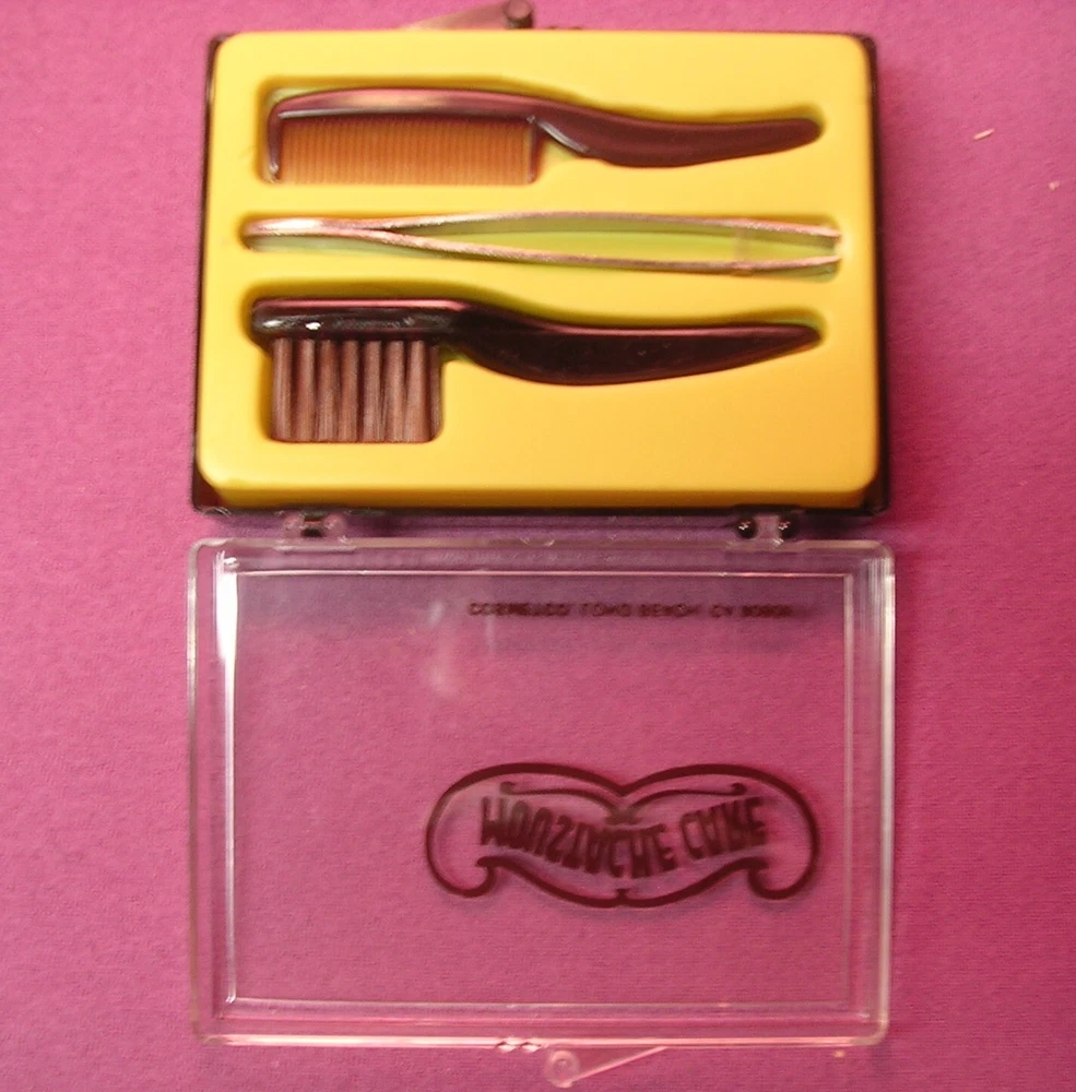 4 Items for the Man who has Everything. First is a Brand New, Never Used Mustasche Care Kit by Cosmetco, Long Beach CA. It consists of a Moustache Comb, Mustache Brush and Tweezers. The second is a Stainless Steel Nose Hair Clipper (Yes, it works) which has been sterilized. The Third Items is a Nail Clipper with a Black Leatherette carrying sleeve. The last item is a plastic shoehorn. Nothing says I Love You more than these great gifts for Christmas, a Birthday or Anniversary. Multiple purchases can be combined for reduced shipping costs. Email me for details.