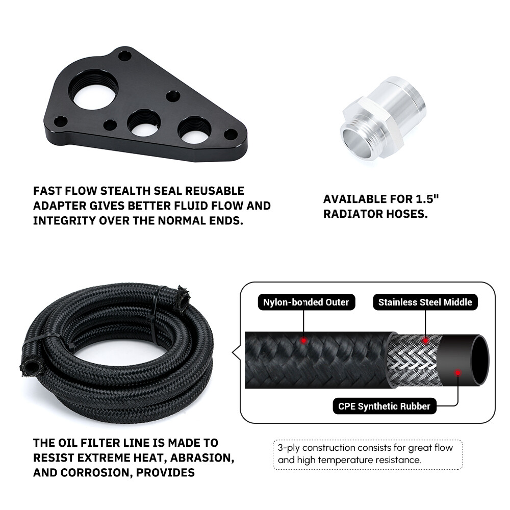 This oil filter relocation kit is a game-changer for Ford 4.6L and 5.4L owners! The billet aluminum and stainless steel construction feels premium, and installation was straightforward. Moving the filter to a better spot makes oil changes so much easier—no more awkward angles or spills. The fast-flow design ensures excellent oil circulation, and the stealth seal keeps everything leak-free. Perfect upgrade for Mustangs, F150s, and F250s—highly recommend for anyone wanting hassle-free maintenance!