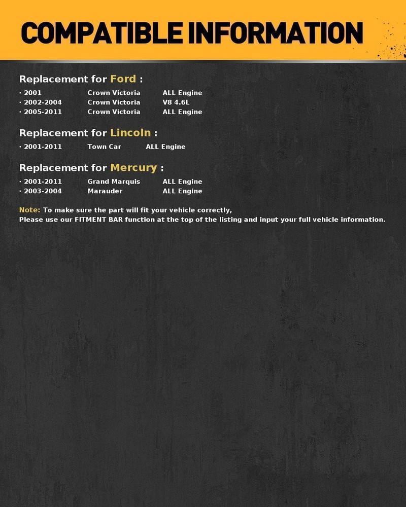 Compatibility: Item Specifics Brand KAC Manufacturer Part Number CU13191 Color Silver Core, Black Tank Core Height 25 In. / 635 mm Core Material Aluminum Core Thickness 0.63 In. / 16 mm Core Width 18.81 In. / 635 mm Fitment Type direct replacement Hardware Included Nuts,Oil Cooler Fittings Has Engine Oil Cooler No Inlet Diameter 1.38 in. / 35.1 mm Inlet Header 19.44 x 1.94 in. / 493.7 x 49.2 mm Inlet Location Top Right Material Aluminum, Plastic Mounting Hardware Included No Outlet Diameter 1.38 in. / 35.1 mm Outlet Header 19.44 x 1.94 in. / 493.7 x 49.2 mm Outlet Location Bottom Left Radiator Cap No Style Crossflow Tank Material Plastic Transmission Oil Cooler Yes Transmission Type Automatic or Manual Transmission Type Radiator Placement on Vehicle Engine Compartment Manufacturer Warranty 5 Years Radiator for Kia Optima Cadenza 2011-2014 Hyundai Sonata 2012-2017 Azera 2.4L V6 Compatibility: 11-15 Kia Optima 2.4L Non-Hybrid Engine Only 11-14 Hyundai Sonata 2.4L Non-Hybrid Engine Only 12-17 Hyundai Azera 3.3L V6 14-16 Kia Cadenza 3.3L V6 Package Including: 1x Radiator 1x Using Guide Replace Steps 1.Raise and support the vehicle, Open the petcock valve or remove the lower radiator hose to drain the coolant from the radiator. 2.Disconnect the radiator reservoir hose, Remove the upper and lower radiator hose. 3.Disconnect the cooling fan electrical connector, Remove the cooling fan mounting bolts, Remove the cooling fan. 4.Disconnect the transmission cooler lines. Remove the radiator mounting bolts, Remove the condenser mounting bolts, Remove the radiator from the vehicle. 5.Mount the radiator. Mount the new radiator in position. 6.Install the condenser mounting bolts and tighten them down, Install the radiator mounting bolts. 7.Connect the transmission cooler lines, Mount the fan. Mount the cooling fan in position, Install the cooling fan mounting bolts, Reconnect the cooling fan electrical connector. 8.Slide the hose onto the connection. Install the upper and lower radiator hose. Connect the radiator reservoir hose. Close the drain petcock as needed. Then fill the radiator with coolant. 9.Bleed the air from the cooling system. FAQ about radiator: Q:What are some common radiator problem? Bad temperature gage Bad hoses Cracked radiator Bubbles in the line Broken water pump Bad fan Fluid obstructions Q:What happen when radiator goes bad? The radiator is used for cooling the internal combustion of the engine. When the radiator is broken, the engine could overheat and causing damage to the vehicle. Q:How do you know if the radiator is broken? Overheating engine Leaks Shifting issues Fluid discoloration Exterior fins blocked Passenger heater not functioning Q:How long do radiators last? If properly maintained, your radiator should last somewhere between 8 to 10 years. Payment FREE SHIPPING on all products within 50 States USA! USA Sales & Support - We are a 100% USA Seller! We ship 5 Days a week (Mon-Friday) excluding major Holidays. Tracking Number will be uploaded to eBay and or / Emailed to you typically within 24 hours of shipment. International Customers may be subject to customs fees that are out of our control. International shipments may take longer than the eBay specified time due to country customs. We only accept Paypal. Quantity orders are welcome! Shipping USA Sales & Support - We are a 100% USA Seller! We ship 5 Days a week (Mon-Friday) excluding major Holidays. Tracking Number will be uploaded to eBay and or / Emailed to you typically within 24 hours of shipment. International Customers may be subject to customs fees that are out of our control. International shipments may take longer than the eBay specified time due to country customs. We only accept Paypal. Quantity orders are welcome! Returns 1. All our product share 1-year warranty. If incorrect or defective item when you receive it, please feel free to contact us via eBay message. We promise no extra charges, we will pay return shipping fee and arrange replacement ASAP. 2. If buyer want to return the product without any problem, buyer should pay return shipping fee. The item must be returned in good condition and its original packaging and accessories, never installed or mounted. We will not accept returns after 30 days of delivery date. Contact Us 1. Any problem, complaint or suggestion happened during transaction, please contact us before leaving any feedback. We are committed to resolve all issues in a friendly and satisfactory manner. 2. We will solve your problem during working time (except weekends and public holidays). Thank you! DESCRIPTION PAYMENT SHIPPING RETURN POLICY CONTACT US Shop Category Store Home Running Boards pump Starter Alternator AC Condenser AIR FILTER Other Hot Item Headlights Assembly for 2003-2006 Chevy Silverado Avalance 1500 2500 3500 Lamps USD 94.99 440cc Big Bore Cylinder Piston Gasket Kit Fit For Honda Sportrax TRX400EX 99-08 USD 66.49 For 2010 2011 2012 2013 Mazda 3 Halogen Headlight Set Left & Right Pair Headlamp USD 109.99 Rear Rotors + Brake Pads for Chevrolet GMC Silverado Sierra 1500 Tahoe Yukon XL USD 128.99 New Starter for Pontiac Grand Am 3.4L V6 2001 2002 2003 2004 2005 01 02 03 04 05 USD 79.99 Excellent Delivery Help & Info Payment Policy Shipping Policy Return Policy FAQ About Us New List Item 4pack NEW Ignition Coil FOR 2014-2018 2019 2020 Jeep Cherokee 2.4L L4 UF751 USD 38.99 UF659 OEM 4 Ignition Coil for 1.6L 2.0L Nissan Juke Sentra Rogue Sport 2011-2019 USD 41.99 6x Ignition Coils for Chevy Traverse Cadillac ATS CTS GMC UF569 V6 3.0/3.2/3.6L USD 58.99 6 Ignition Coil Pack For 1999-2010 Honda Accord Odyssey 3.0L 3.2L 3.5L V6 UF242 USD 60.99 Set of 8 Ignition Coils for Nissan NV 2500 3500 Pathfinder V8 5.6L Infiniti QX56 USD 64.99 Brake Master Cylinder Reservoir for Ford Crown Victoria Lincoln Town Car 1in US Item Type: Brake Master Cylinder Condition: Brand New Warranty: One Year Warranty OE Number: M630054, 132942, 1W1Z2140BA, 6W1Z2140BA Quantity Sold: One Piece Note 1: Bore: 1 