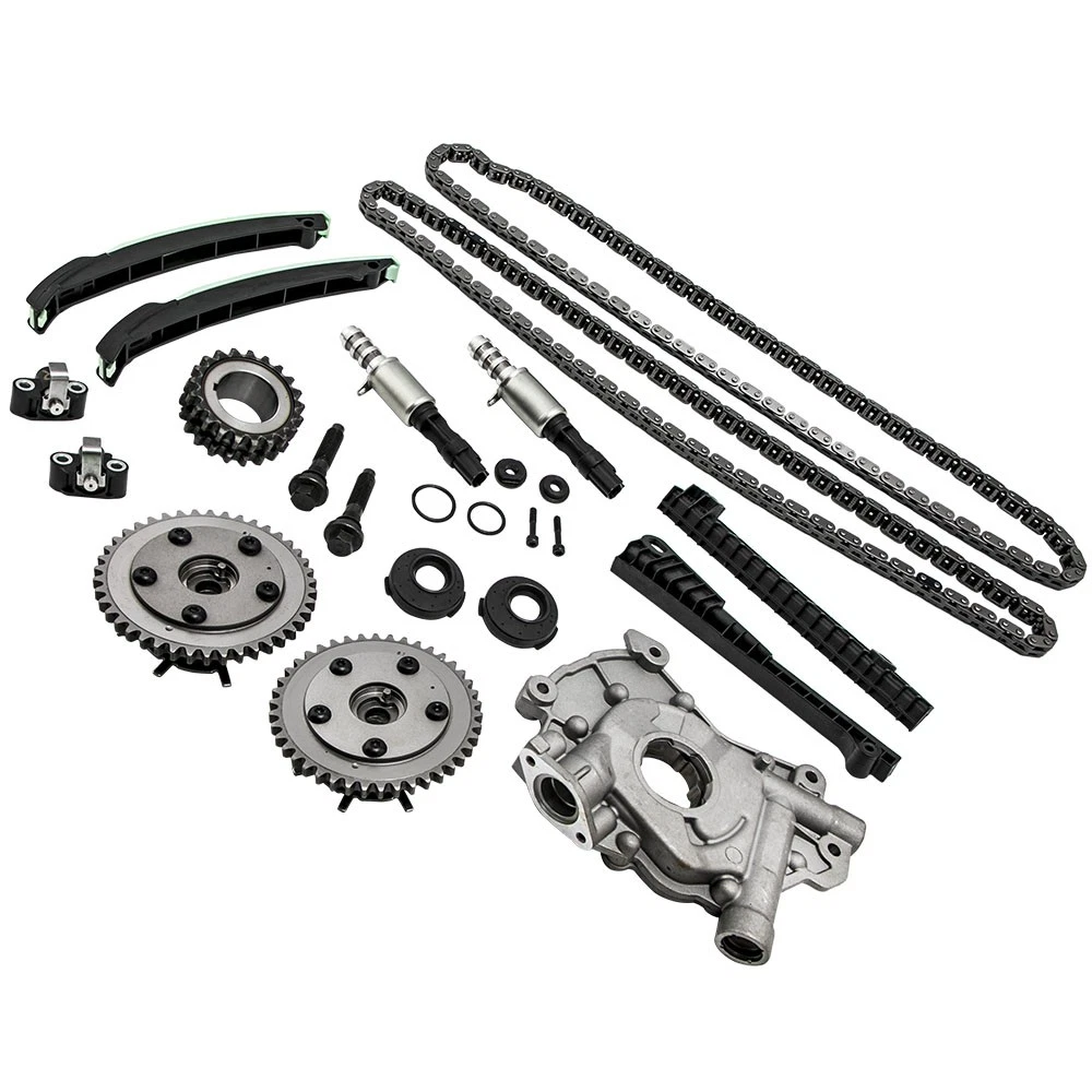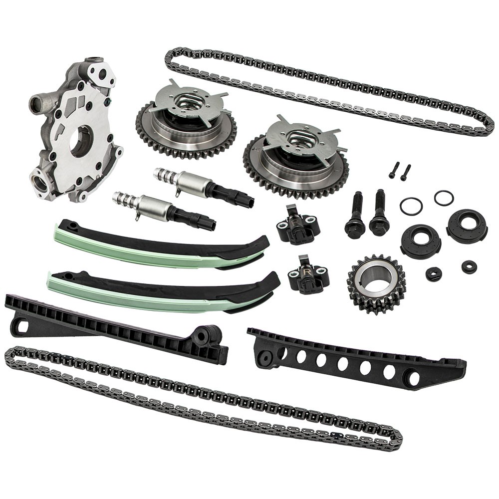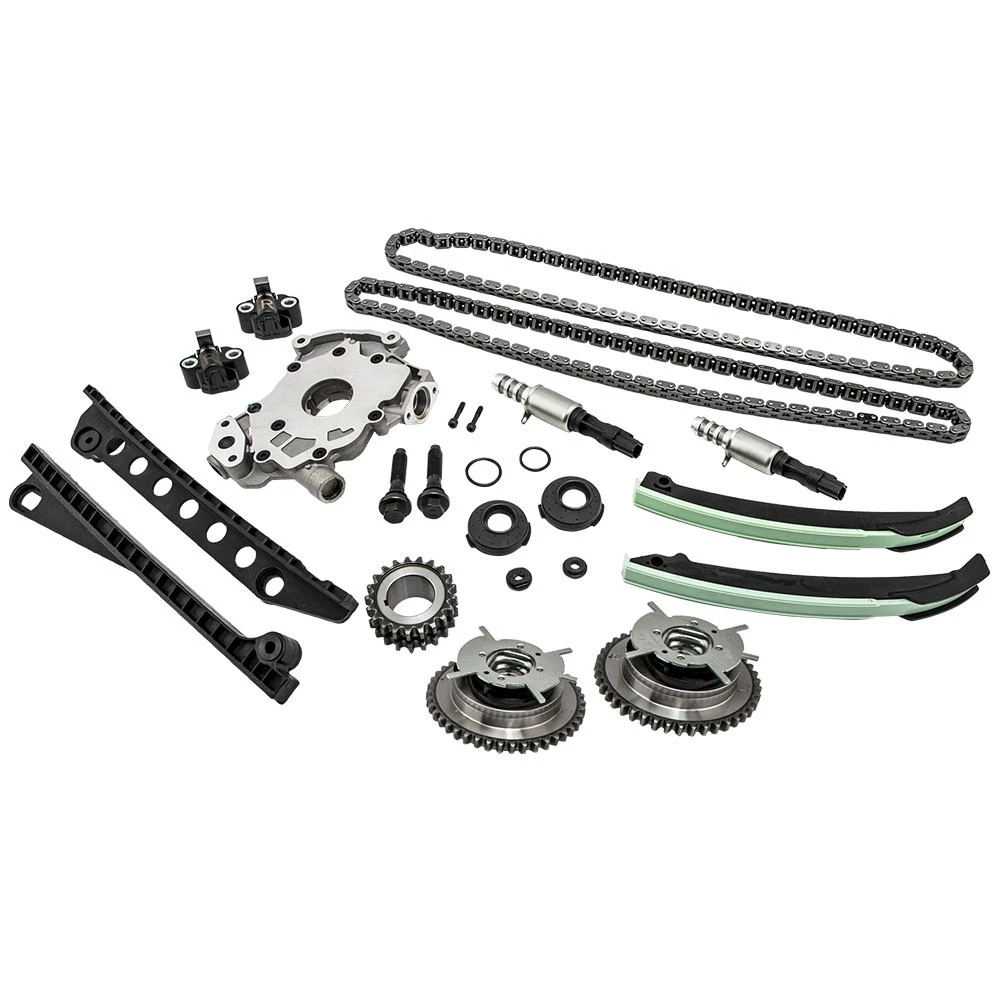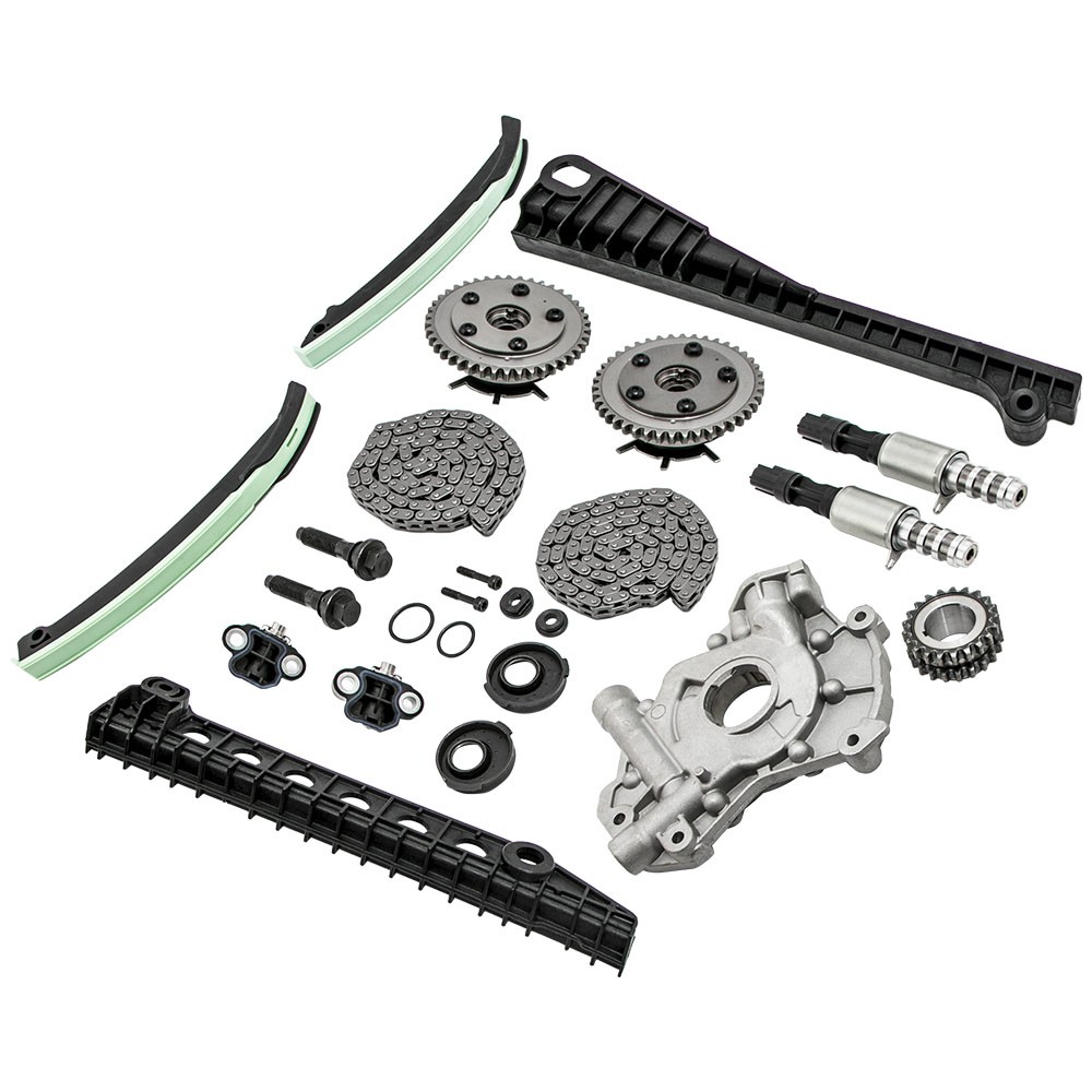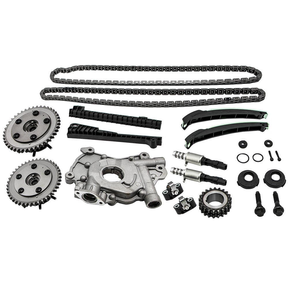 Part Numbers: 5L3Z-6268-A, XL3Z-6306-AA, F85Z-6K255-AA, 4L3Z-6M256-AA, F85Z-6M274-AA, 2L1Z-6K297-AA, 3R2Z-6A257-DA Application (24 VALVE), VIN CODE "5" - TRITON 2005-2014 for FORD EXPEDITION 5.4L 330CID V8 SOHC 2005-2010 for FORD F-250 SUPER DUTY 5.4L 330CID V8 SOHC 2005-2010 for FORD F-350 SUPER DUTY 5.4L 330CID V8 SOHC 2006-2008 for LINCOLN MARK LT 5.4L 330CID V8 SOHC 2005-2014 for LINCOLN NAVIGATOR 5.4L 330CID V8 SOHC (24 VALVE), VIN CODE "V" - TRITON 2006-2010 for FORD F-150 5.4L 330CID V8 FLEX SOHC Specifications Material: Steel/Aluminum/Plastic Type: Engine Timing Chain Kit, Engine Oil Pump Quantity: 2 Timing Chain (122 links) 2 Cam Sprockets/Phasers (left and right - 42 teeth) 1 Crank Sprocket (double row - 21 teeth) 2 Tensioners (left and right) 2 Tensioner Arms (left and right) 2 Guide Rails (left and right) 1 Oil Pump 2 Timing Solenoids Warranty: 2 year warranty for any manufacturing defect Notice * No instruction included; Professional installation & alignment suggested. * Please check our store for other auto parts you may be interested in. * Please feel free to contact us for whatever we can help MXR04FXJT