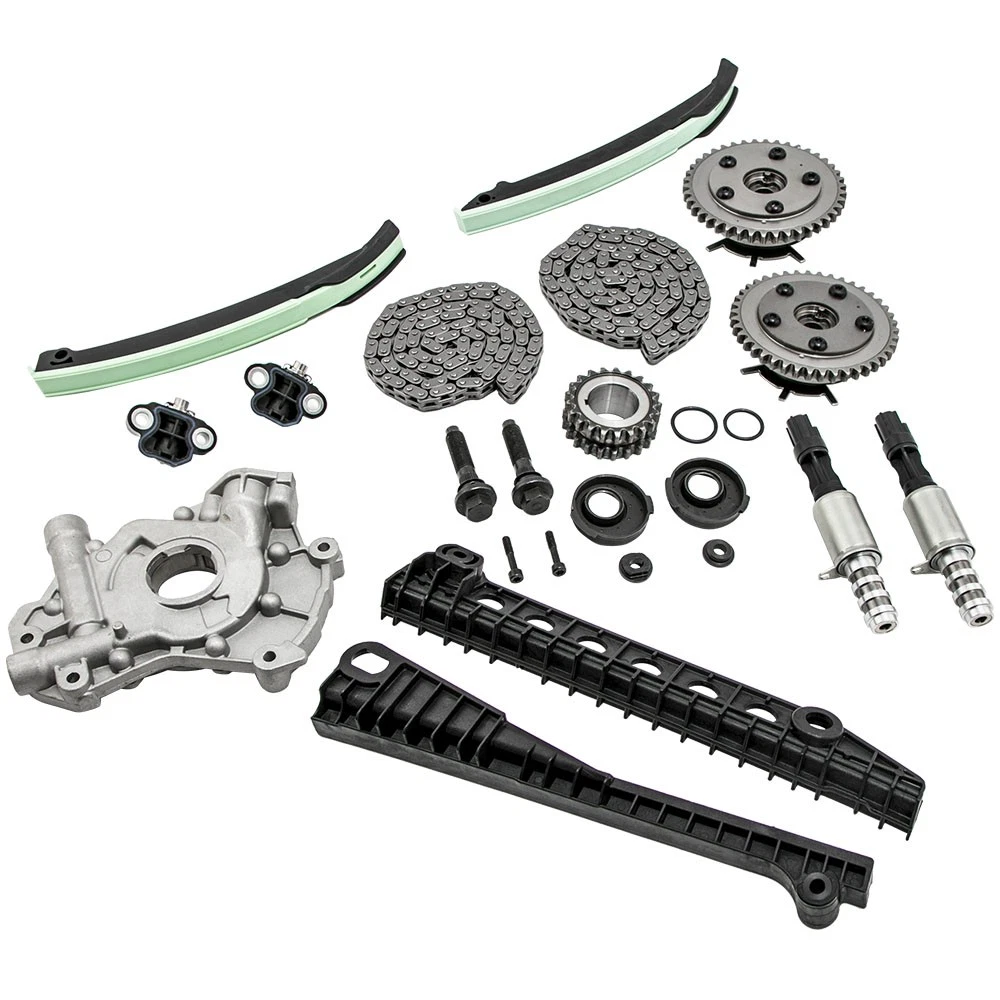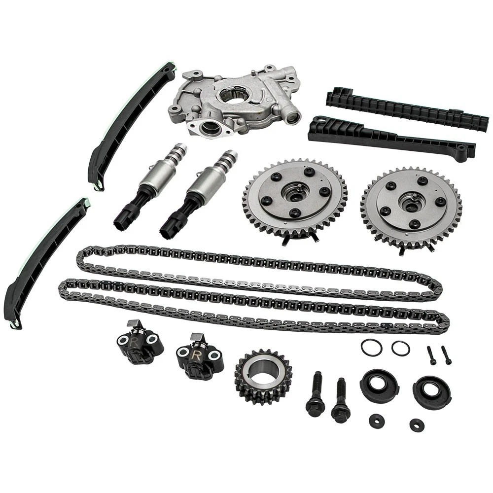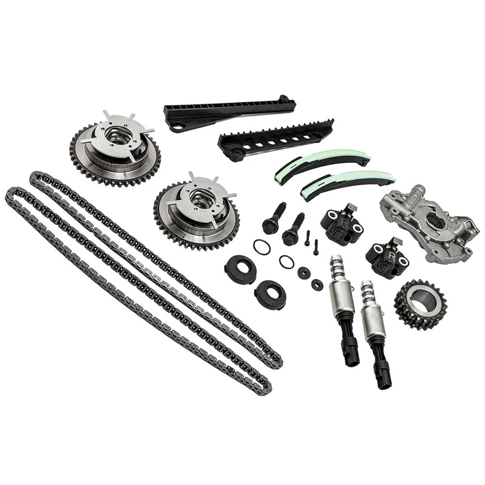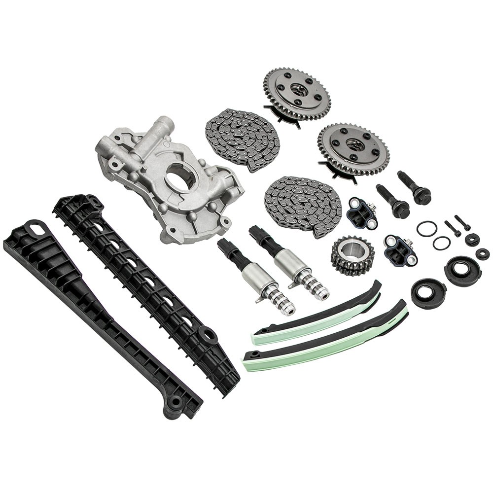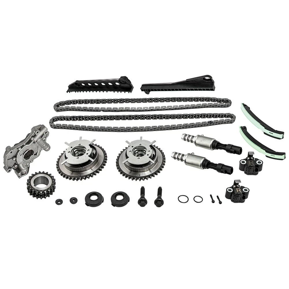 Part Numbers: 5L3Z-6268-A, XL3Z-6306-AA, F85Z-6K255-AA, 4L3Z-6M256-AA, F85Z-6M274-AA, 2L1Z-6K297-AA, 3R2Z-6A257-DA Application (24 VALVE), VIN CODE "5" - TRITON 2005-2014 for FORD EXPEDITION 5.4L 330CID V8 SOHC 2005-2010 for FORD F-250 SUPER DUTY 5.4L 330CID V8 SOHC 2005-2010 for FORD F-350 SUPER DUTY 5.4L 330CID V8 SOHC 2006-2008 for LINCOLN MARK LT 5.4L 330CID V8 SOHC 2005-2014 for LINCOLN NAVIGATOR 5.4L 330CID V8 SOHC (24 VALVE), VIN CODE "V" - TRITON 2006-2010 for FORD F-150 5.4L 330CID V8 FLEX SOHC Specifications Material: Steel/Aluminum/Plastic Type: Engine Timing Chain Kit, Engine Oil Pump Quantity: 2 Timing Chain (122 links) 2 Cam Sprockets/Phasers (left and right - 42 teeth) 1 Crank Sprocket (double row - 21 teeth) 2 Tensioners (left and right) 2 Tensioner Arms (left and right) 2 Guide Rails (left and right) 1 Oil Pump 2 Timing Solenoids Warranty: 2 year warranty for any manufacturing defect Notice * No instruction included; Professional installation & alignment suggested. * Please check our store for other auto parts you may be interested in. * Please feel free to contact us for whatever we can help MXR04FXJT