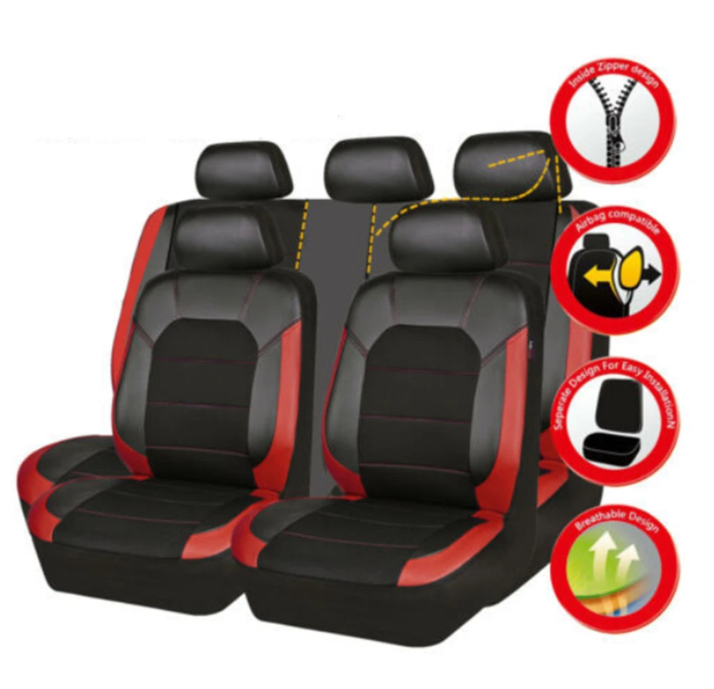 Product Description 9Pcs Full Set Splicing PU Leather Car Seat Covers Autos Seat Protector Interior Accessories Waterproof Durable Description: This seat covers fits most Detachable Headrest seats . Seat covers can extend the life of your vehicle and keep your seats looking brand new and clean. These seat covers fit most of the standard vehicles including sedan, SUV, truck, van and minivan. 1, Universal application fits almost 5-seats ( Cars, Trucks, & SUV ) 2, Helps Protect a Nice Seat or Disguise an Old One 3, Airbag compatible 4, Easy to install Features: 100% Brand new and high quality! Easy Installation Durable and Long Lasting Comfortable in Four Season Color: Black/Red Material: PU Leather 1.The car seat cover is full set. 2.It is very easy to install the car seat cover, doesn't need to dismantle the seats, a person can complete it in 20 minutes. 3.The car seat cover doesn't affect the airbag, doesn't affect the child safty seat, doesn't affect the seat belts,too. 4.The car seat cover is universal,it is suitable for most of cars,If you are unsure if this cover is right for your vehicle, please contact us before buying. Package Include: 5 seat head covers: 30*27cm 2 front seat covers: 118*56cm 1 backrest: 135*76cm 1 rear seat cushion: 135*56cm Accessories: one pack of hooks Payment Returns Contact Us Shipping We accept payment by PayPal only ! Payment should be completed within 5 days after buyer places the order,or else an unpaid case will be opened in order to cancel the transaction. If you can not pay in time, please contact us. e-check from PayPal will only be processed once the payment clears. All of the items will be shipped to buyer's EBAY address,please confirm your address on Ebay before you buy.Your order will be usually shipped out the same or next business days once the payment is made and cleared. 30-day Warranty with Exchange for defective, malfunctioned, incorrect or parts-missing items. Please notify us and return the item with all parts and accessories packed and marked "FOR EXCHANGE" within 14 days of receipt. If defective, malfunctioned or parts-missing items are no longer available, a refund may be issued. All returning postage costs will be the responsibility of the buyers under all circumstances. If you encounter any problems about anything, please feel free to contact us and we will do our best to assist you solve the issue. If you are not satisfied in anyway, please feel free to let us know and give us a second chance to correct it before you decide to leave any neutral or negative feedback. Please contact us through eBay link if you have any questions. We will reply you within 24- 48 hours. Please check you spam mail if no response for 48 hours. All items will be checked before packing. All items are new and of high quality. Item will be shipped within 1 business days upon receipt of payment, excluding weekends and public holidays. If to USA,we will ship your order by USPS,it will take about 8-12 working days to you,and you can track it on line. If to other country,we will ship your order by China Post or Singapore Registered Air Mail,it will take about 14-21 working days to you,you aslo can track it on line. Delivery time is about 14-28 business days and it may take up to 8 weeks . Payment We accept payment by PayPal only ! Payment should be completed within 7 days after buyer places the order,or else an unpaid case will be opened in order to cancel the transaction. If you can not pay in time, please contact us. eCHECK from PayPal will only be processed once the payment clears. All of the items will be shipped to buyer's EBAY address,please confirm your address on Ebay before you buy.Your order will be usually shipped out the same or next business days once the payment is made and cleared. Returns 30-day Warranty with Exchange for defective, malfunctioned, incorrect or parts-missing items. Please notify us and return the item with all parts and accessories packed and marked "FOR EXCHANGE" within 14 days of receipt. If defective, malfunctioned or parts-missing items are no longer available, a refund may be issued. All returning postage costs will be the responsibility of the buyers under all circumstances. Contact Us If you encounter any problems about anything, please feel free to contact us and we will do our best to assist you solve the issue. If you are not satisfied in anyway, please feel free to let us know and give us a second chance to correct it before you decide to leave any neutral or negative feedback. Please contact us through eBay link if you have any questions. We will reply you within 24- 48 hours. Please check you spam mail if no response for 48 hours. Shipping All items will be checked before packing. All items are new and of high quality. Item will be shipped within 1 business days upon receipt of payment, excluding weekends and public holidays. If to USA,we will ship your order by USPS,it will take about 7-10 working days to you,and you can track it on line. If to other country,we will ship your order by China Post or Singapore Registered Air Mail,it will take about 14-21 working days to you,you aslo can track it on line. Delivery time is about 14-28 business days and it may take up to 8 weeks . Welcome to our Store ~