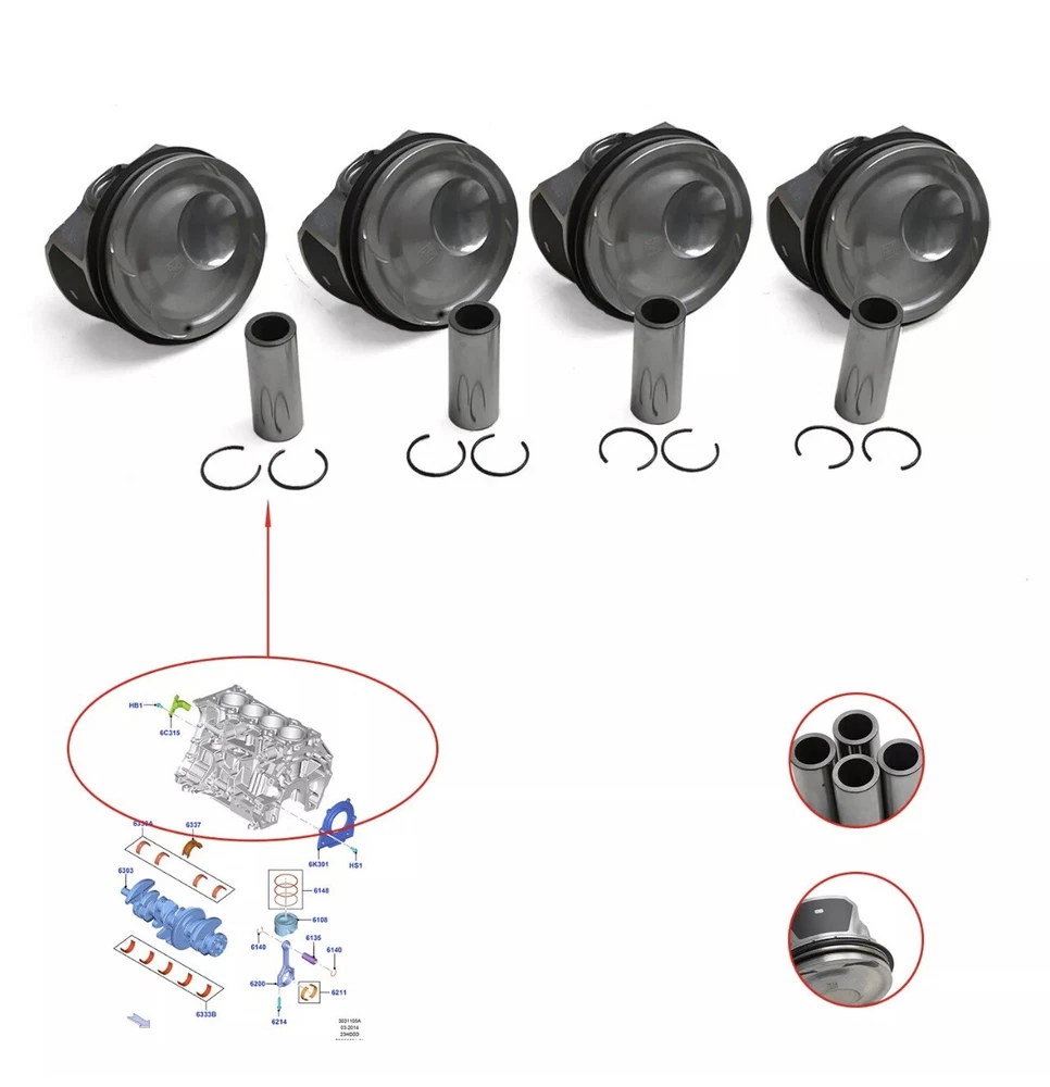 Ford Focus Mustang Lincoln 2.3L Engine Pistons & Rings Set EJ7Z6108E
