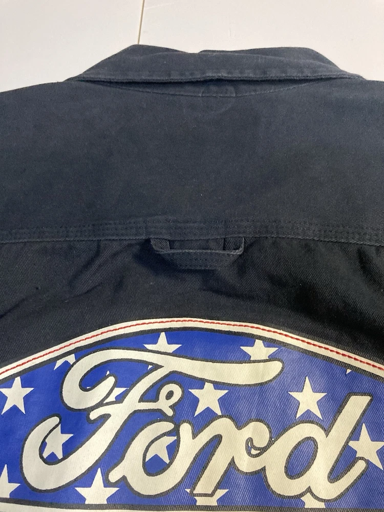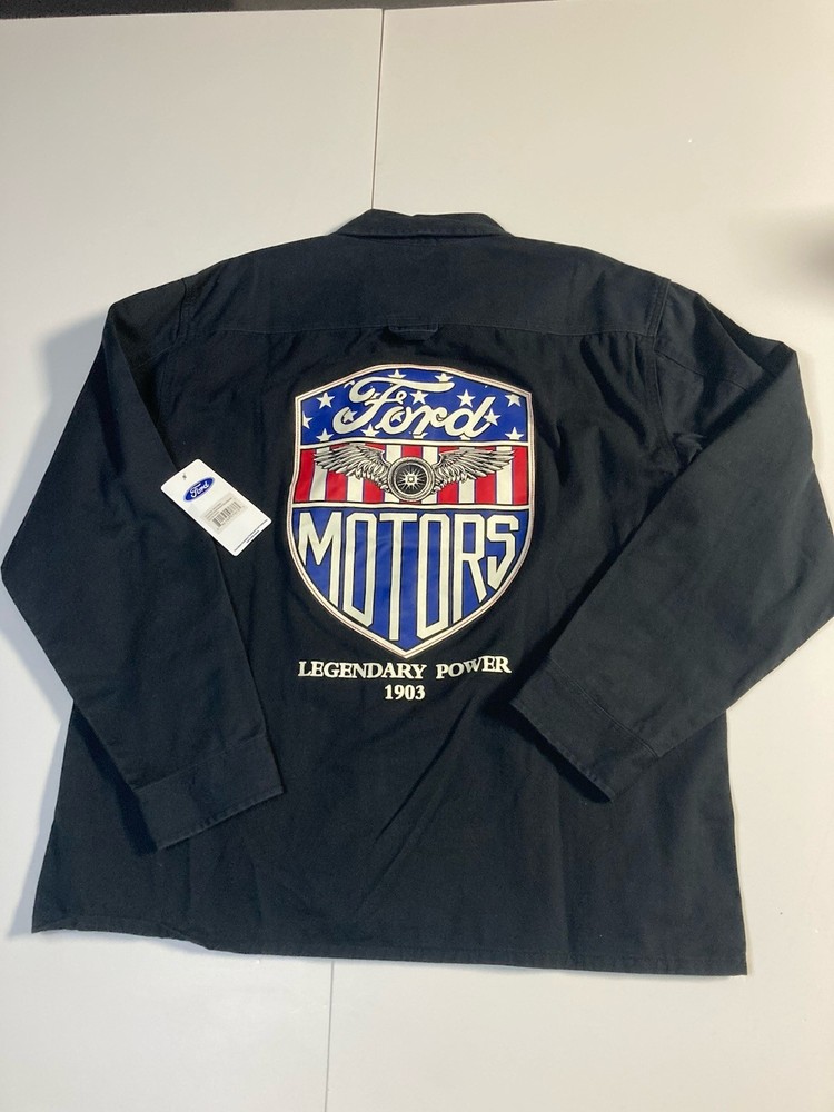 The Ford Motors Mechanic Style Canvas Twill Chore Coat Work Jacket is a stylish and durable outerwear piece perfect for men. Made from a cotton blend fabric with a solid black color and embroidered logo accents, this mid-length jacket exudes a classic and retro transportation theme. The regular fit and button closure make it both comfortable and practical for everyday wear. With its Ford Motor Company branding and high-quality construction, this jacket is a must-have for any man looking to add a touch of nostalgia to their wardrobe.