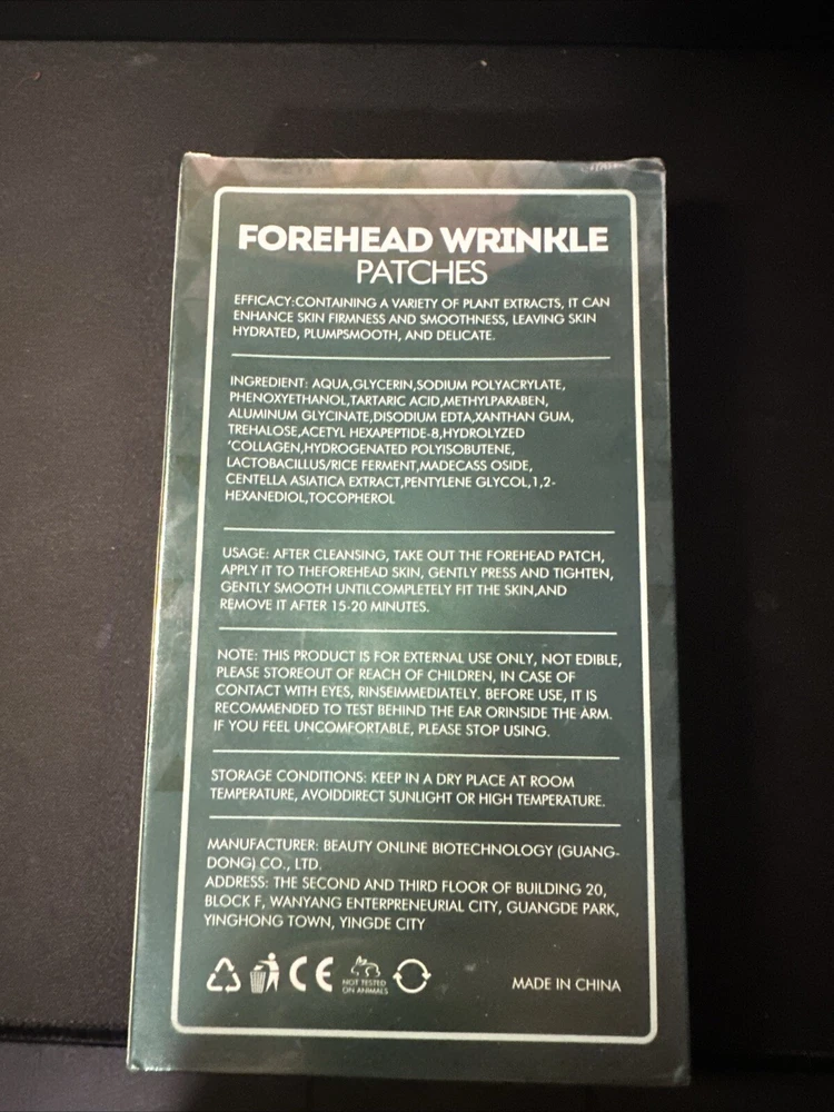 Size: Regular Skin Type: All Skin Types Features: Forehead Wrinkle Ingredients: Aloe Vera, collagen, vitamine E Type: Patches Set Includes: Patches Expiration Date: 14/03/27 Body Area: Face Department: Unisex Main Purpose: Wrinkles Brand: Unbranded