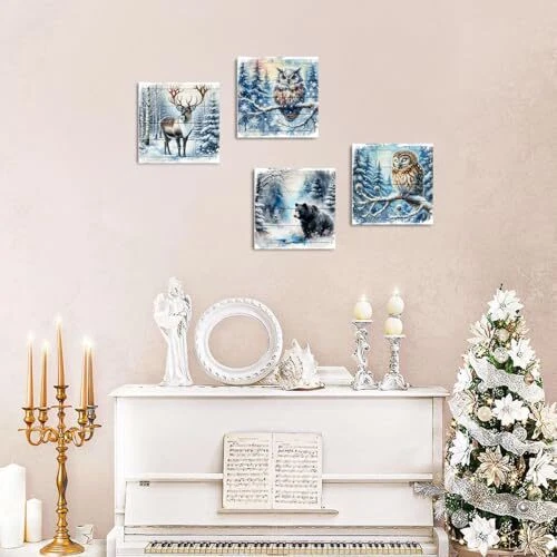 30 Days Return Policy Fast Delivery Trusted seller Forest Deer Pictures Wall Decor Christmas Wall Art Bear Pictures Winter Forest Canvas Prints Wildlife Animal Paintings Elk Owl Bear Posters Artwork for Living Room Kitchen Home Decoration 12x12" 4Pcs Product Description 【Winter Forest Wall Art Size】- 12x12in x 4pcs(30cmx30cm x 4), Rustic winter forest animals canvas wall art, retro farmhouse Christmas wall decor already come with canvas wrapped wooden framed and hook mounted ready to hang. Vintage wood grain farmhouse Christmas wall art, adds an winter festival touch to your holiday party or home interior. 【Deer Wall Decor Unique Gift】- Farmhouse bear elk owl wall art snow forest wall decor great gift for any occasions. Winter forest scenery farm animals wall decor suitable for giving to family members, friends, lover, business partners, neighbors, workmates on Christmas, New year, Birthday, Housewarming, Wedding, Memorial Day, family gathering, Party, Father's day, Mother's day etc. 【Wildlife Pictures Christmas Wall Art】- Rustic wood grain wildlife wall art easy match any room decor style, suitable to hang in living room, foyer, apartment, villa, kitchen, office, couple bedroom, guest room, bathroom, hall, lounge, dorm, hotel, restaurant, coffee, loft, gym, bar, etc. Impressive wall art painting bringing modern nature winter scene to your home decor. 【Christmas Decor Premium Canvas Prints Art】- We use high-definition giclee printing technology, for bring bright&rich color and HD pixels, prints on high gloss, waterproof, UV resistant canvas with vivid color and great details. No needed additional frame, easy for hang. 【Please Note】- This Christmas wall art display picture are only for illustration purpose, color may vary due to different brand of monitor, light, screen setting.If t is any issue, please don't hesitate to mail us. We always committed best buying experience for our customers. Shipping Returns Payment Shipping Shipping is FREE to all addresses other than APO/PO boxes in the lower 48 states. All our stock ships from US-based warehouses. Shipped via USPS or UPS (depending on location and package weight) Unless stated otherwise, all orders will ship within 24-72 hours of your payment being processed. Check our feedback to see the great reviews of FAST shipping we offer. Returns As our valued customer, we will do our best to make sure the product you receive arrives to you on time and as expected. If you are not satisfied with your purchase, please contact us within 30 days of receiving your order to process a return. Payment We currently accept payment via eBay managed payments only. Once payment is cleared, we will dispatch your shipment within 1-3 business days. Please refer to the "Shipping" tab for more information regarding shipping speed to your destination.