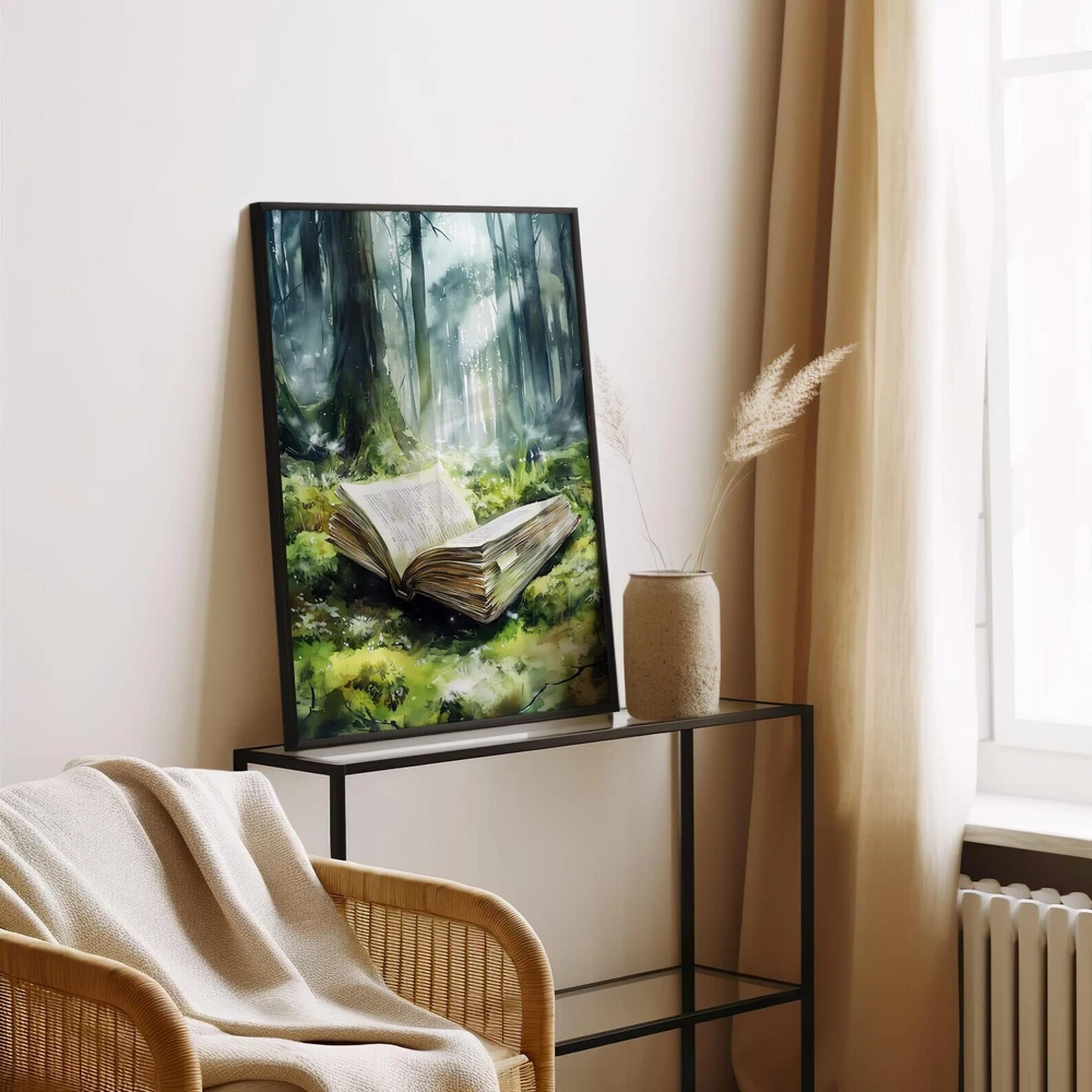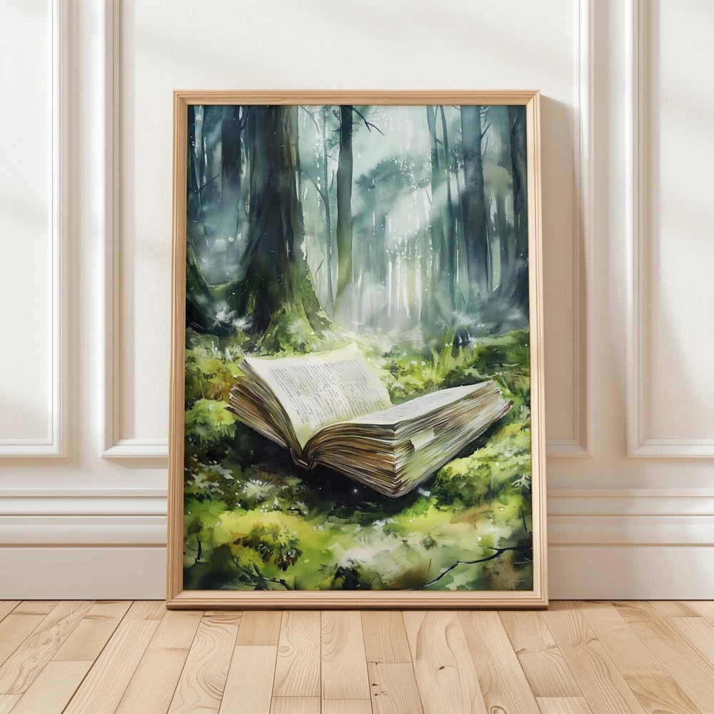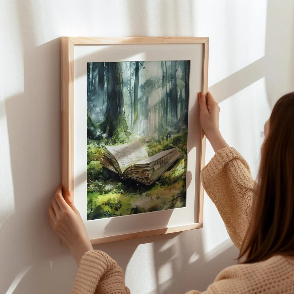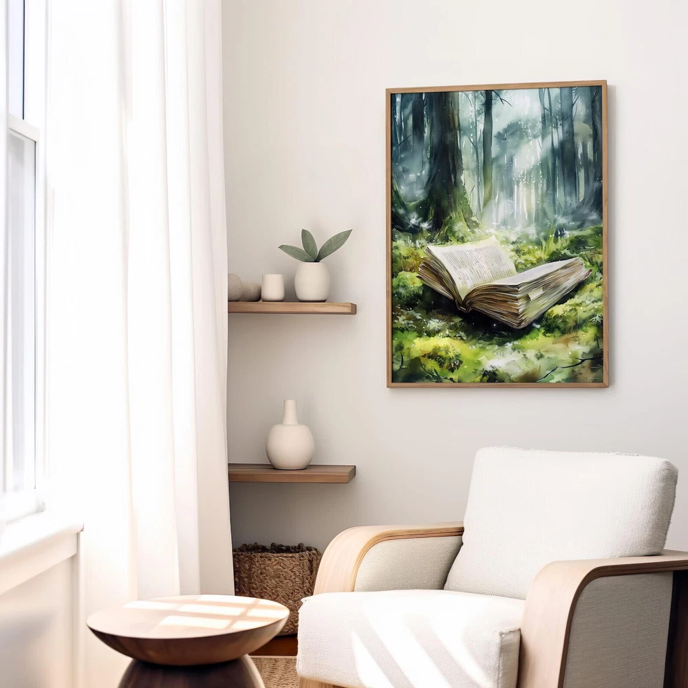 Forest Fantasy Book Art Print Magical Book Lover Wall Decor Enchanted Woodland Art Mystical Library Decor Material: Premium luster photo paper Print type: Inkjet printing One side printed + The finish provides the highest possible resolution and color saturation + Lasts up to 200 years in color and 400 years in black-and-white + Printed on high-quality resin-coated photo base paper medium + Posters can be hung with double-sided tape, tacks, or framed + Hand washing with a gentle cry cloth is recommended for extended durability I will hand select the best choice of paper for your chosen design to ensure top quality results for a beautiful, bright and luxurious print. All prints are sealed in cellophane slips for protection during transportation, and are shipped in a protective cardboard envelope.
