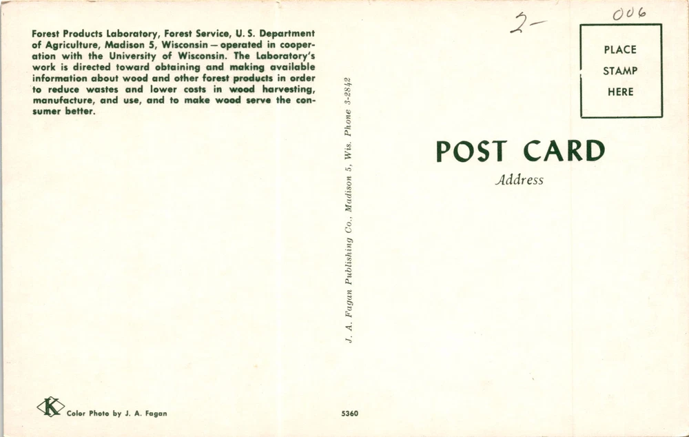 Forest Products Laboratory, Forest Service, U. S. Department of Postcard