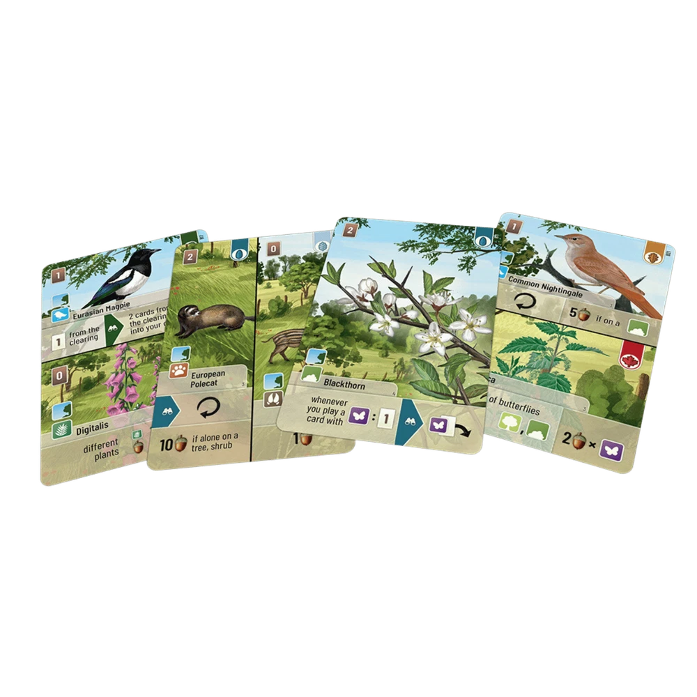 Lookout Games Forest Shuffle: Woodland Edge Expansion Immerse yourself in the serene beauty of nature with Forest Shuffle: Woodland Edge. This expansion set for the beloved Forest Shuffle game introduces new flora and fauna, enhancing your strategic play with lush edge-of-the-forest habitats. Encounter diverse wildlife, discover hidden pathways, and manage your woodland resources to thrive. With stunning artwork and engaging mechanics, Woodland Edge brings the enchanting forest environment to life, making every game session a captivating journey. Perfect for nature lovers and strategy enthusiasts alike, Forest Shuffle: Woodland Edge offers endless possibilities for exploration and adventure. EXPAND YOUR FOREST SHUFFLE EXPERIENCE: Introduce 36 new multifunctional cards to your Forest Shuffle game, adding incredible diversity and fresh strategies to explore. DISCOVER THE ALPS: Venture into the Alpine region with this expansion, bringing new species and two additional tree types to enrich your gameplay. ADDITIONAL TACTICAL DEPTH: Some cards introduce exciting twists to the base game's rules, offering more strategic options and challenges to your forest-building endeavors. PERFECT FOR STRATEGY LOVERS: Designed by Kosch, this expansion enhances the tactical aspects of Forest Shuffle, making it even more engaging for players seeking a thoughtful and strategic card game. SEAMLESS INTEGRATION WITH BASE GAME: Easily shuffle the new cards into your existing Forest Shuffle game for an even more varied and immersive gaming experience. Contains: 36 new multifunctional cards