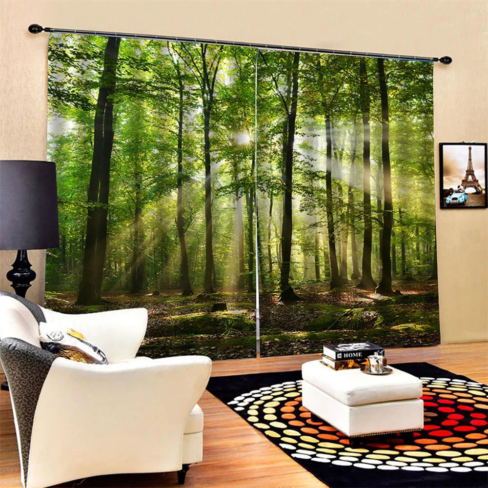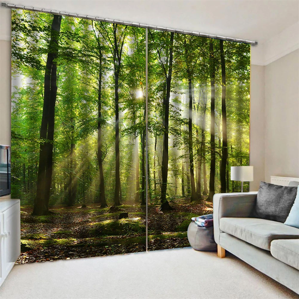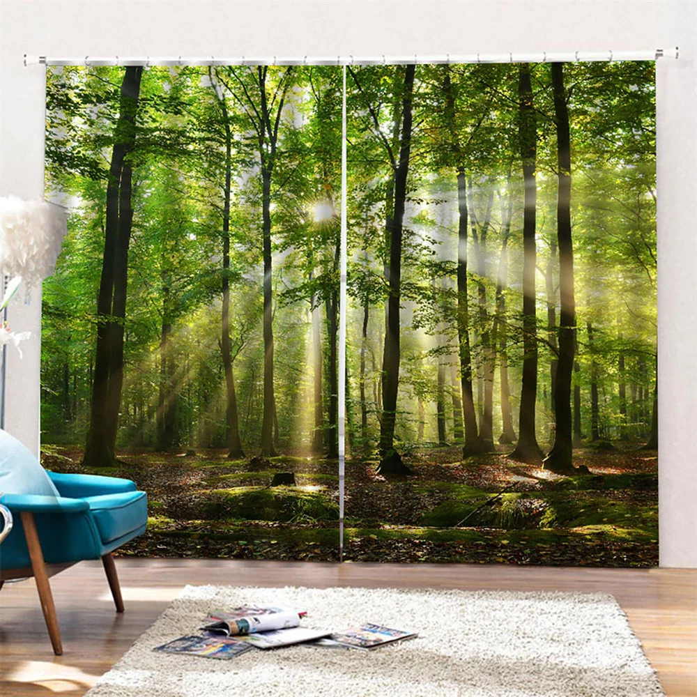 Forest Sunlight Filtering Curtains for Balcony Bedroom Living Room Privacy