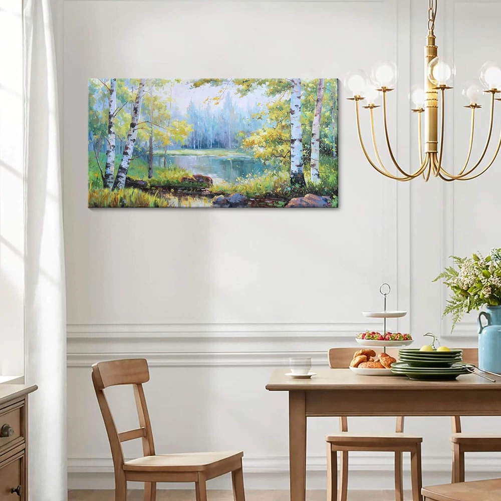 Subject: Forest Wall Decor wall art Bedroom decor Specification: Size:20x40Inches Material: canvas, wood, ink. Color: yellow,green Typology:Wrapped Canvas Features: - Premium natural canvas - Lightweight and easy to hang - Genuine archival pigment ink - UV-protective coating - Tight stretched and folded corners by hand - Gallery wrapped in sustainable, non-warping wood - Ready to hang with hanging hardware on the back - Professionally handmade with care! Great Inspirational Art for Wall Decor: Perfect choice for wall decor such as living room, bedroom, guest room, bathroom, kitchen, dinning room, meeting room, hallway, nurseries, coffee house, condo house, hotels, inn, Spa, Lounge, Sauna and other spaces of home, family, office, business, reflection and relaxation. 【Forest Wall Decor wall art size】Forest Wall Decor 20x40inches, this forest wall art a Yellow Green palette that accentuates the serene atmosphere. 【Easy to hang】There is hardware on the back of each piece, and we do put in the mounting parts when we package them, ready to be decorated. 【Canvas wall art】 We use waterproof canvas to protect the painting from moisture,It's the sturdy wood that supports the paintings. 【Funny Gifts】This wall art can be used as a meet-and-greet, housewarming, birthday, and other holiday gifts for friends and family. 【Picture artwork for wall】This wall decoration is suitable for decorating on the wall of living room office bedroom bathroom guest room corridor entryway and so on.